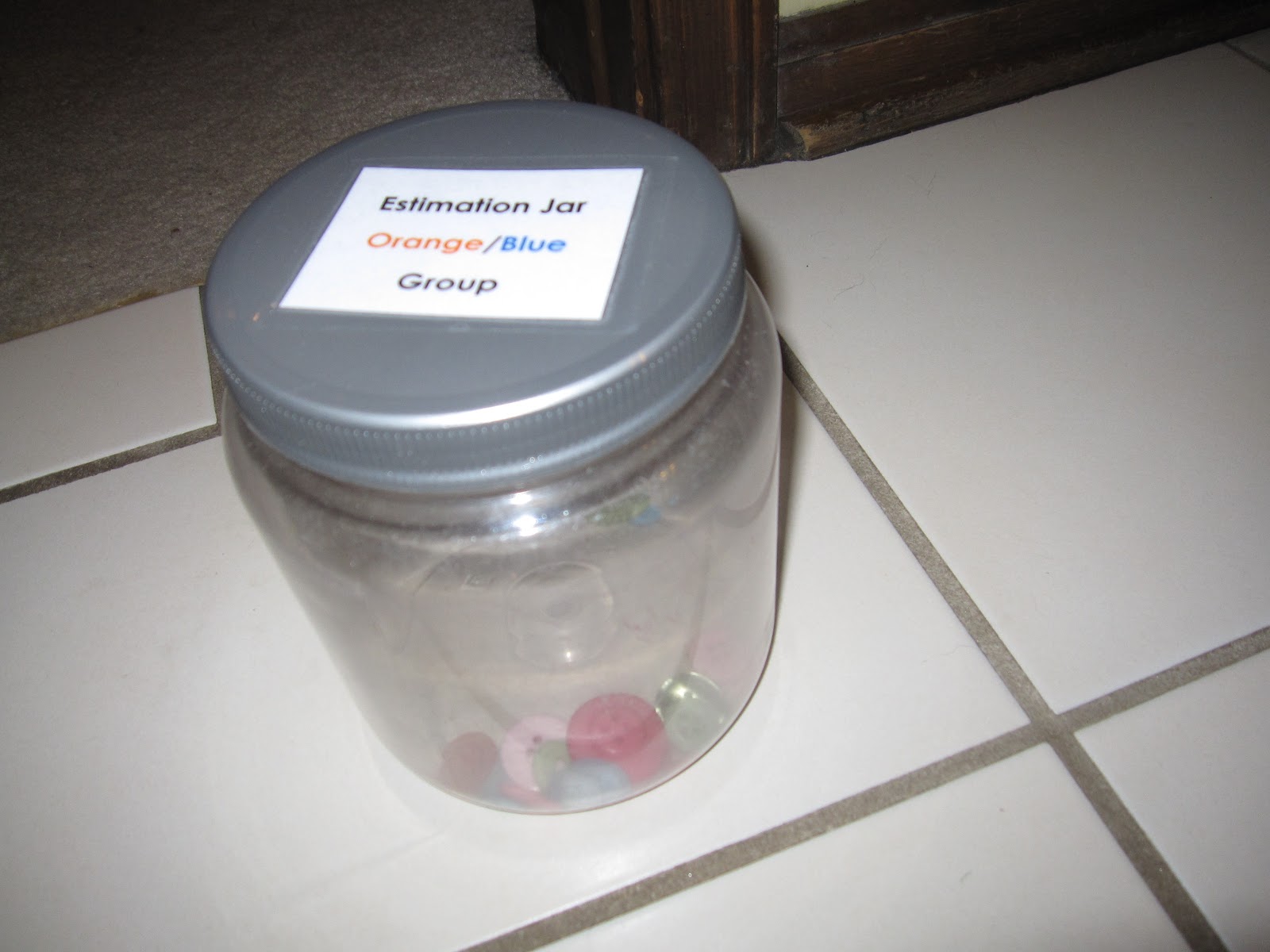 Yesterday it was Gabbie’s turn to bring home the Estimation Jar. She was to put objects in the jar between the amount of 10 and 30 and her friends at school will estimate how many objects there are. We decided to use buttons, and Gabbie put in 19. She then had to draw a picture of her objects.