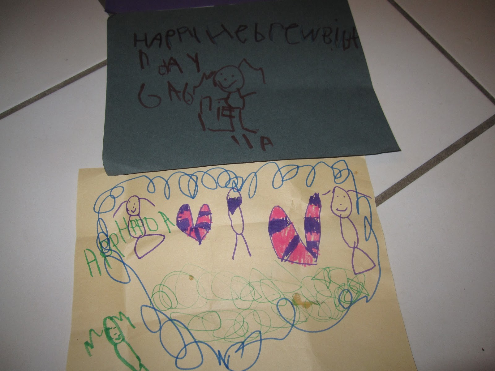 Today, she brought home a special card for me. Since she is learning Hebrew dates at school, I told her yesterday that 11 Cheshvan is my Hebrew birthday. She remembered!