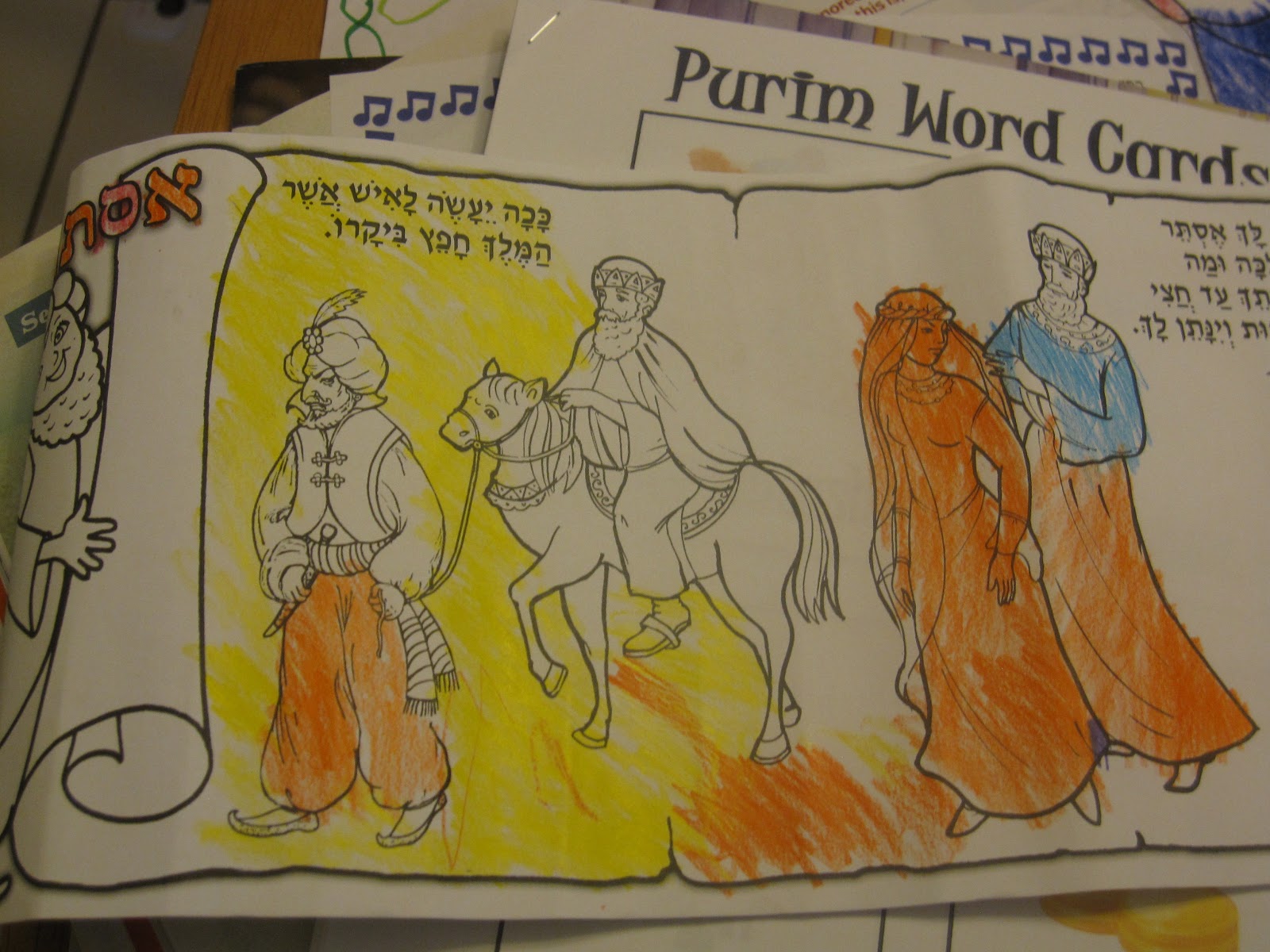 Beginning in January, Simon has been going to school one day a week as well! Here are his Purim projects! Unfortunately, his teacher does help with artwork so it is hard to tell what he did on his own. I do know that he loves to color!