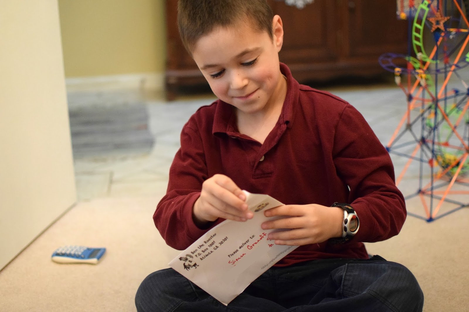 Every day since he received his first postcard, Simon has been asking for his mail from his pen pal! I told him that the next postcard would come in two weeks, because postcards are mailed on the 1st and 16th of the month. As the time got closer for him to receive his 2nd postcard, he got even more excited! So you can imagine how happy he was when the postcard arrived!