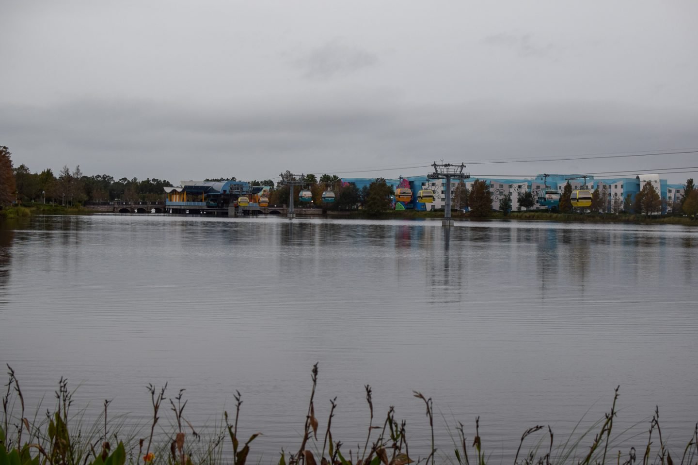 We continued our journey on the Skyliner, making sure we rode the whole thing. This is over the Caribbean Beach, where the main hub of the Skyliner is located. We actually had to switch there when we went from Hollywood Studios to Art of Animation.