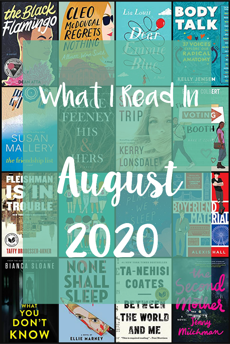 In conclusion, in August I read 22 books, 17 of which are reviewed in this post. This month I read 12 print books, 5 e-books, and 5 audio books. My favorite books this month were Body Talk, Dear Emmie Blue, Side Trip, and Dress Coded.