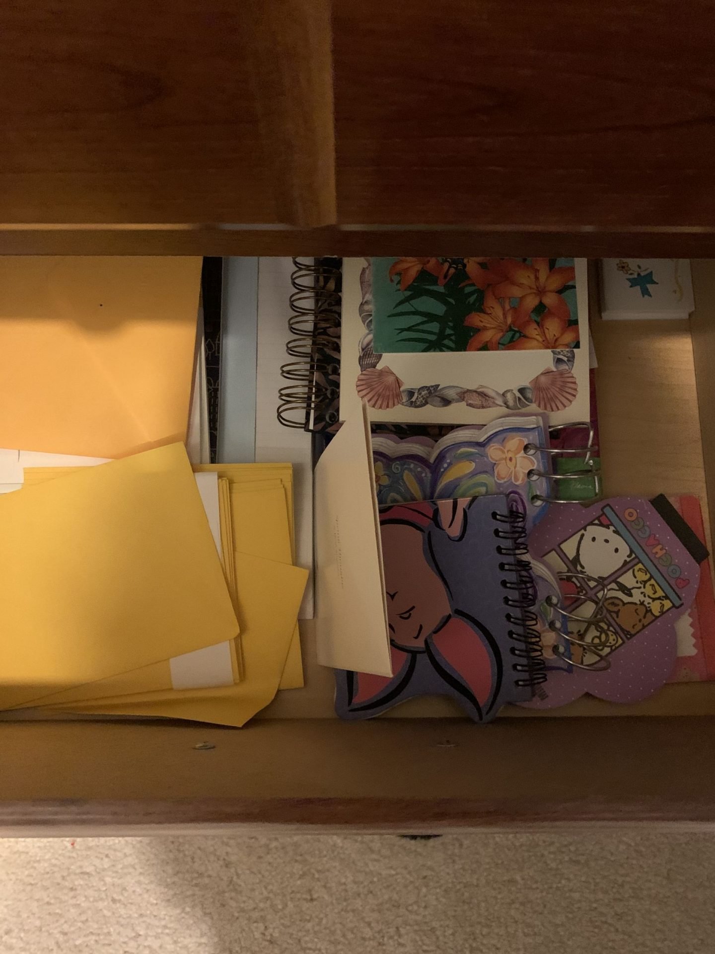 Inside my drawers, I have lots of stationary that I never use. The stationary I do use at times is in my office. So why is this stationary in these drawers? I don’t know.