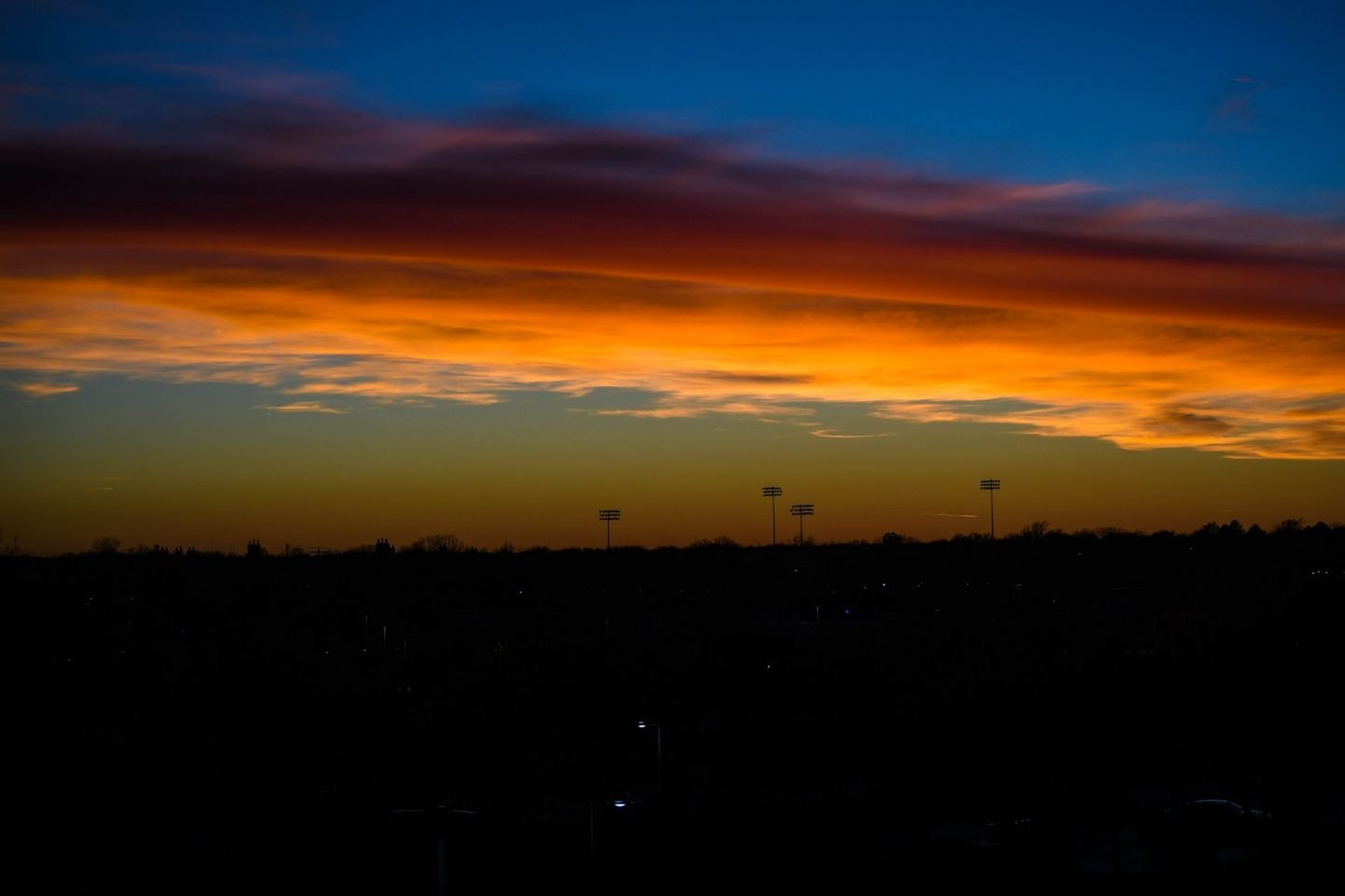 On the way back from the zoo, we passed a ton of police cars by a bank and Dave commented that there must have been a bank robbery. There actually had been and when the culprit fled by car, he was caught right at the intersection by our hotel and we had to weave around the back to get back there! That was an interesting development. Both nights we were there, there were great sunsets that I took photos of from the hotel room: