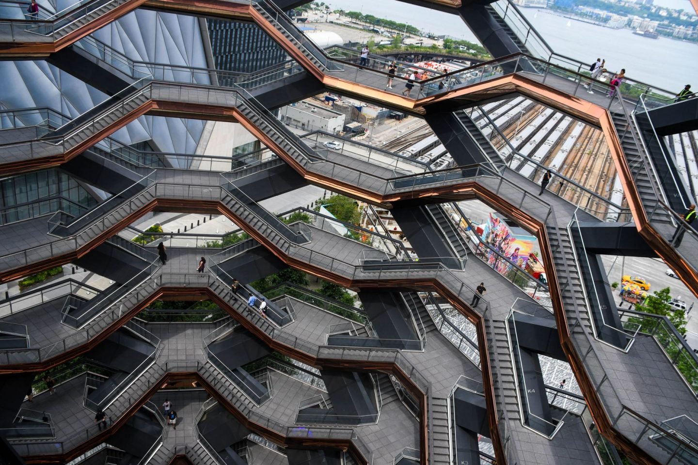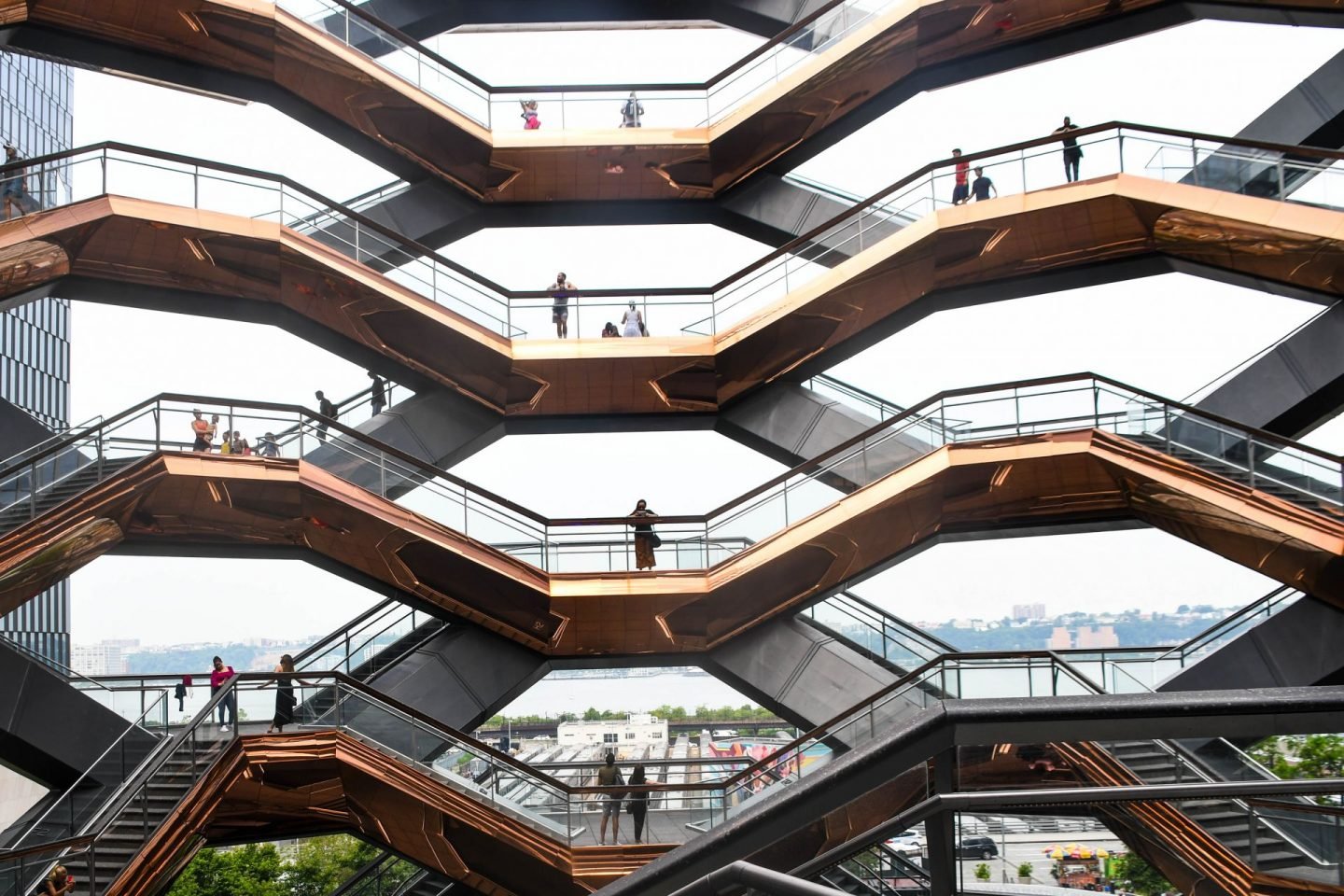 Our first stop was at the Vessel. Unfortunately, since our visit, the Vessel once again had to close to visitors due to a 4th fatal incident at the site. They had tried to prevent death by jumping by stationing security along the low railings at the top and making sure people did not visit alone, but it did not stop this latest death, so the Vessel team is working on a way to open it to visitors again.