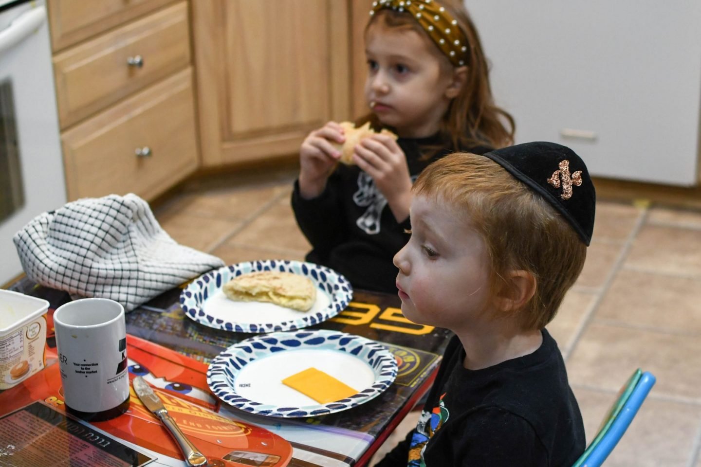 Zachary showing his cousin something on his phone.