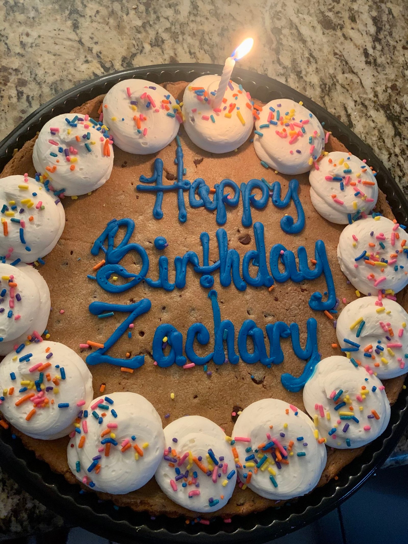 Because of Zachary’s cold, he didn’t start work on his birthday, but Gabbie went back to work and also to the store to get him a cake – it helps to have a teen who can help out like that! So we had cookie cake for his birthday on Tuesday!