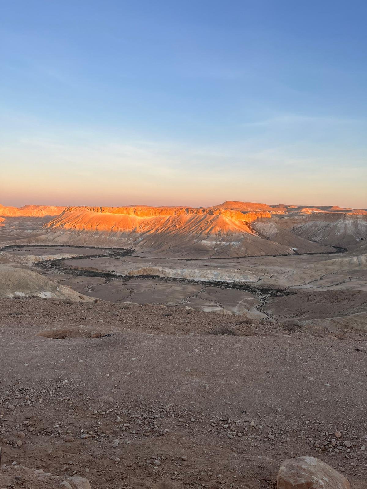 The week began at Sde Boker where they hung out and took pictures at sunset over the desert. It looks a bit like the surface of the moon!