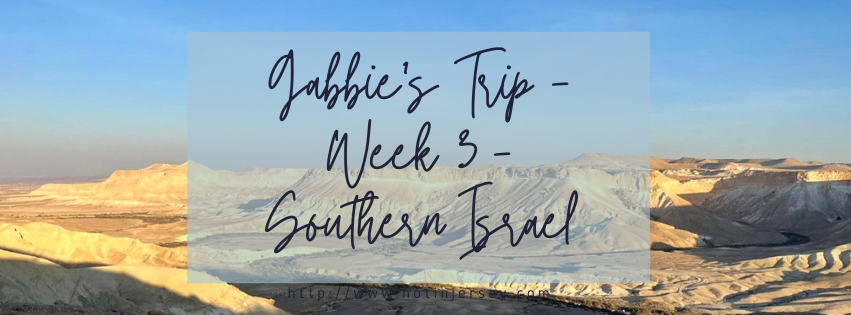 I think I’m a little off on calling the weeks of Gabbie’s trip by week numbers – I think in my last post I covered parts of weeks 2 and 3! But this post picks up after the free weekend, which was the 3rd weekend of the trip, so let’s just say this is week 3 and that this week the group was in southern Israel, which is my favorite part of the country!