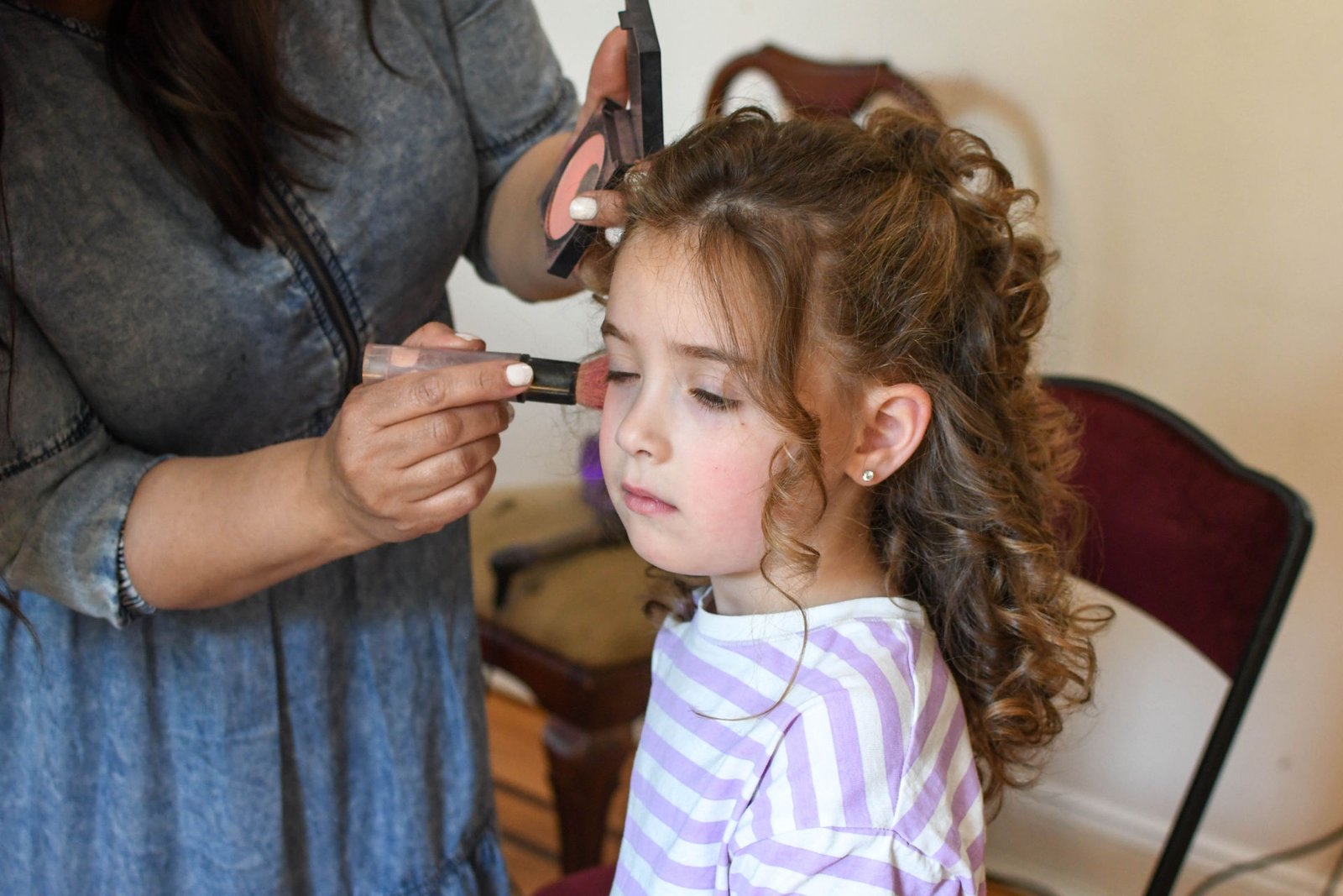 Your first hint that this was like a wedding was the hair and makeup being done beforehand! These are my great-nieces (and Gabbie) getting fancy. I let her do my makeup too.