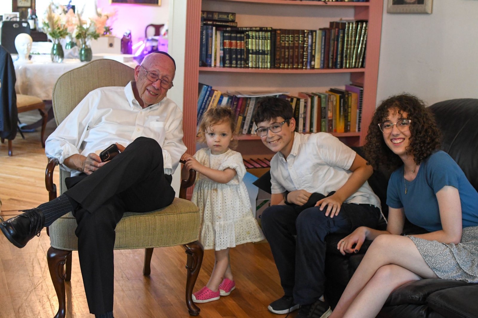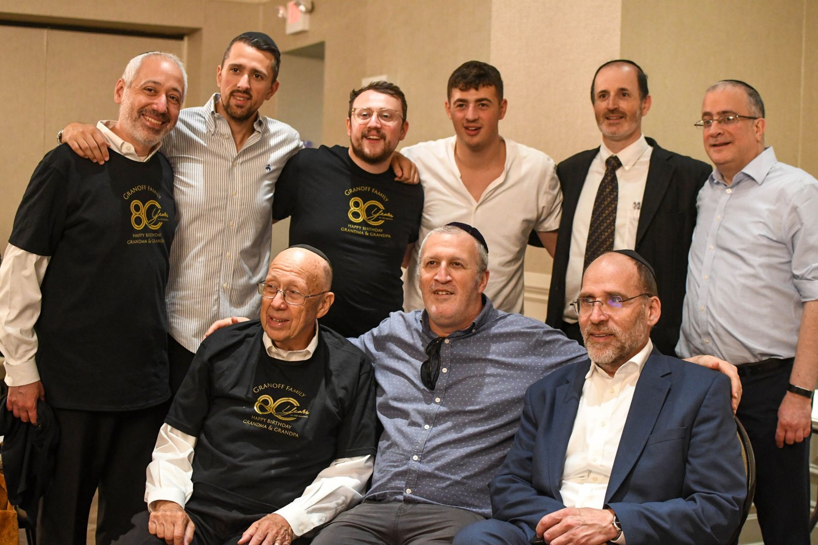 While we were in NJ, we celebrated Dave’s parents / the kids’ grandparents’ 80th birthdays. My father-in-law turned 80 in January and my mother-in-law in June, so we combined their party into one. It was really nice because we were able to have almost all their grandchildren (including spouses, 4 weren’t there) and great-grandchildren (2 weren’t there) at the party. There was a photographer and I thought I’d share her family pictures here, but I haven’t been able to access them (and according to Gabbie, mine are much better anyway…) but because of that there aren’t pictures of me here!