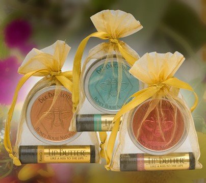 Honey House Naturals – Bee Bar Lotion – We have carefully chosen the perfect fragrances for the Small Bee Bar, and combined them with delightful Lip Butter Tube flavors in a unique color-combination set to please any discerning customer! These remarkable 2-piece sets come presented in a sparkly organza bag.