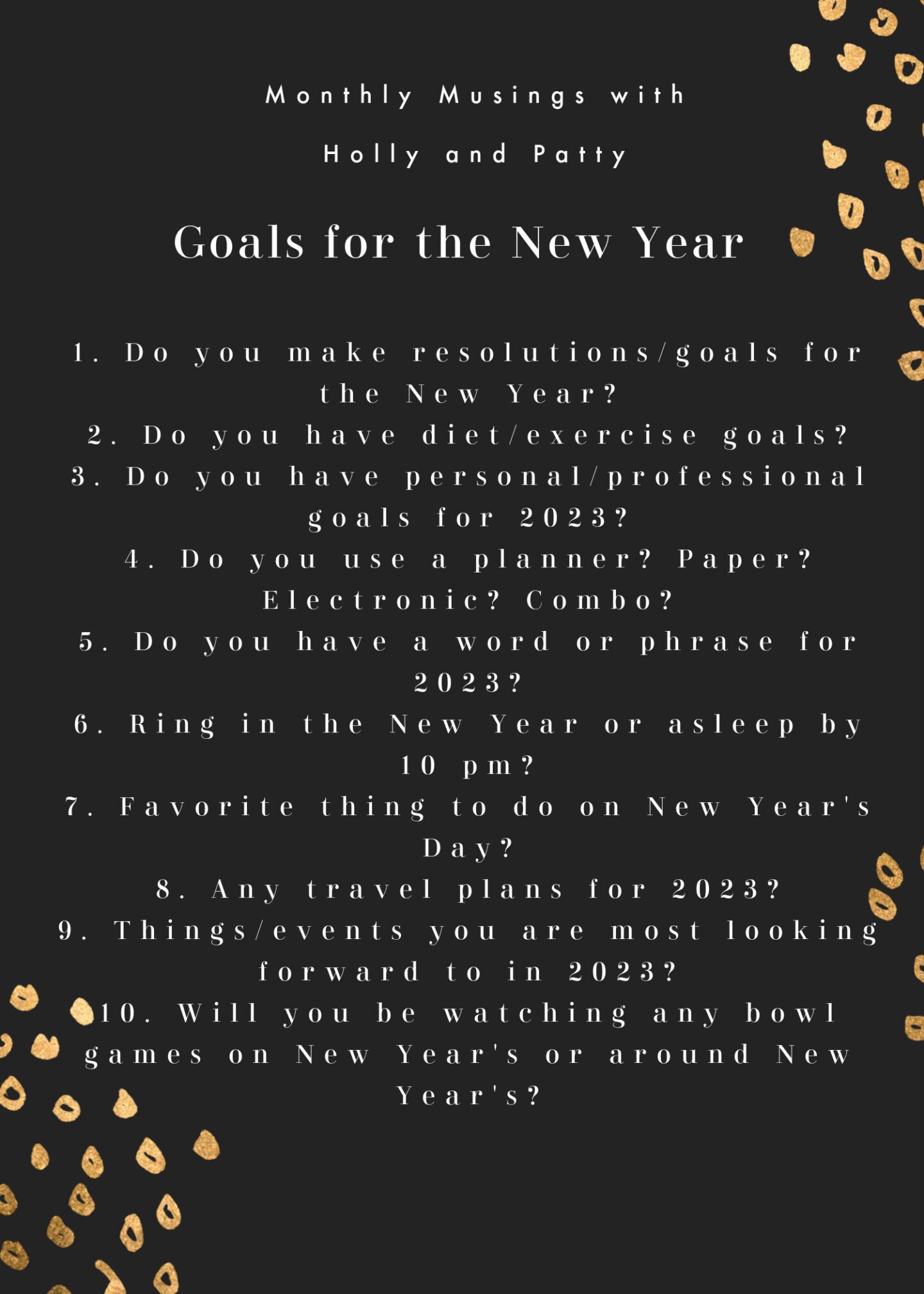 1. Do you make resolutions/goals for the New Year?