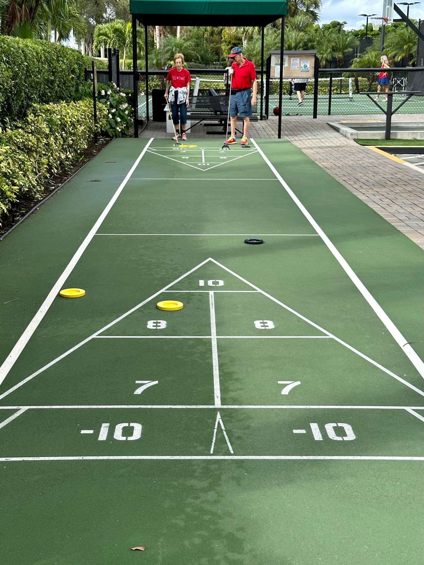 The next morning (Friday) we walked to the clubhouse area and played some shuffle board again and got my mom to join in this time too.