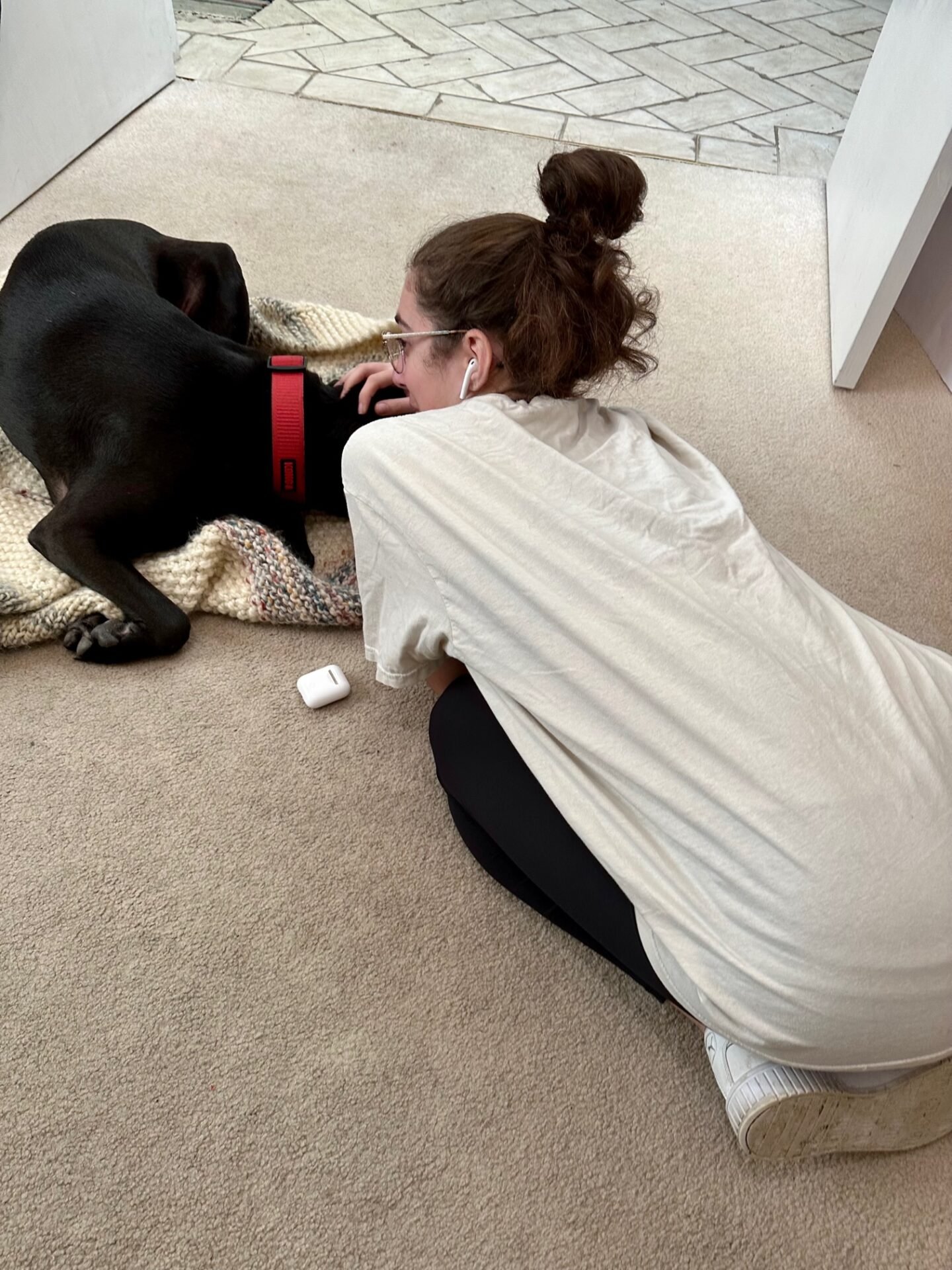Gabbie came to say hi to Bumi, who was still watching me read.