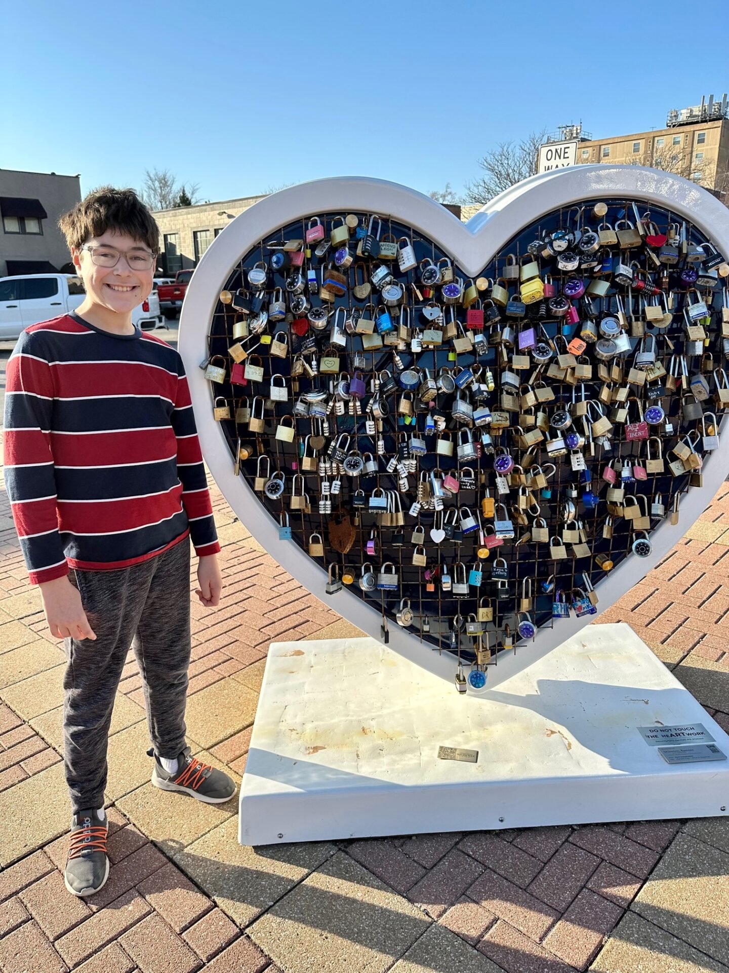 We walked over to an ice cream store on the same street, but it was closed. On the way we passed this lock heart and selfie station so we took pictures.