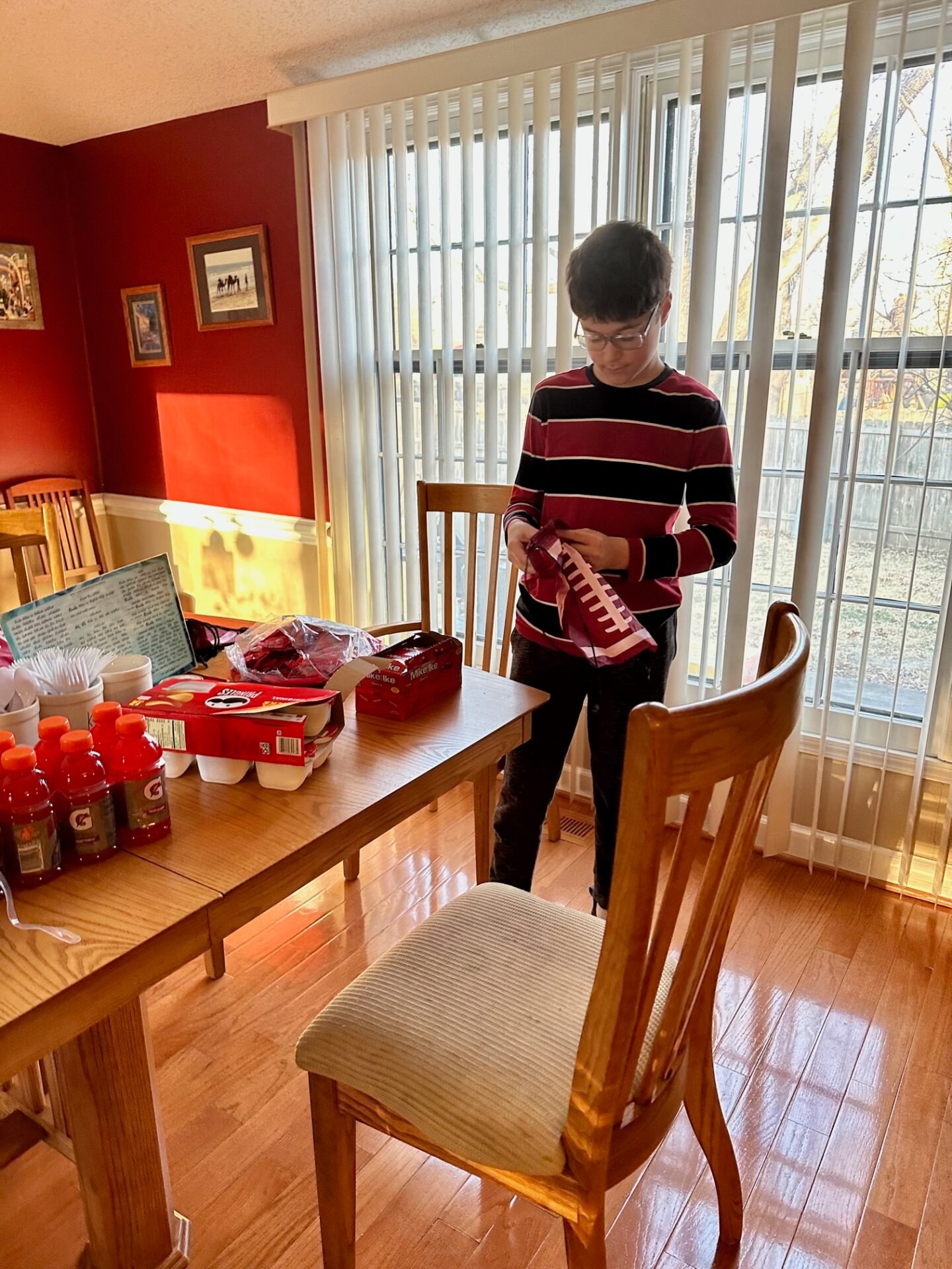 Back home, Simon worked on packing up our Purim bags while Dave went to the store and I got Bumi’s things ready to go home.
