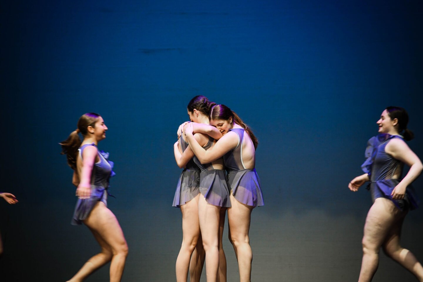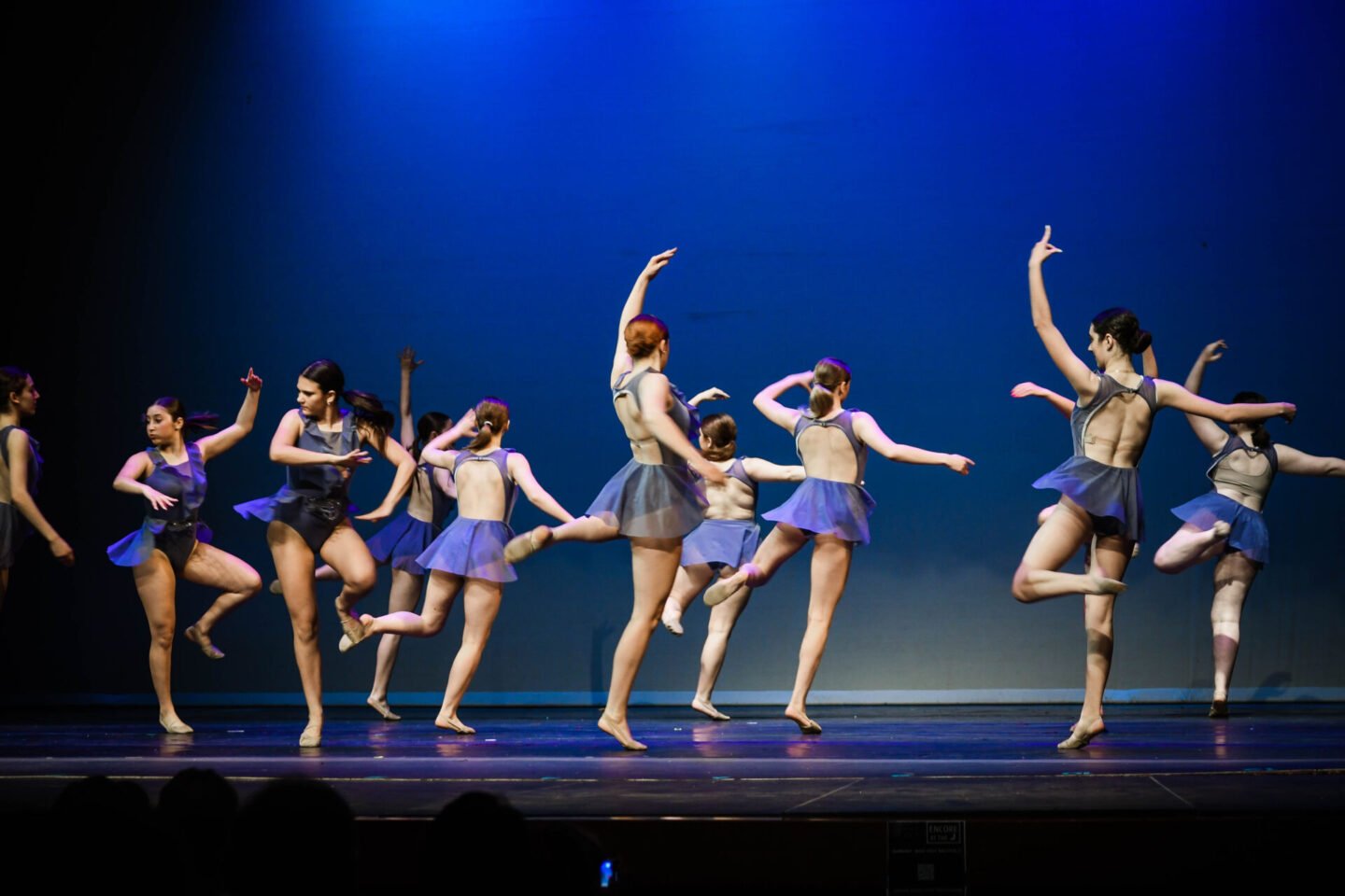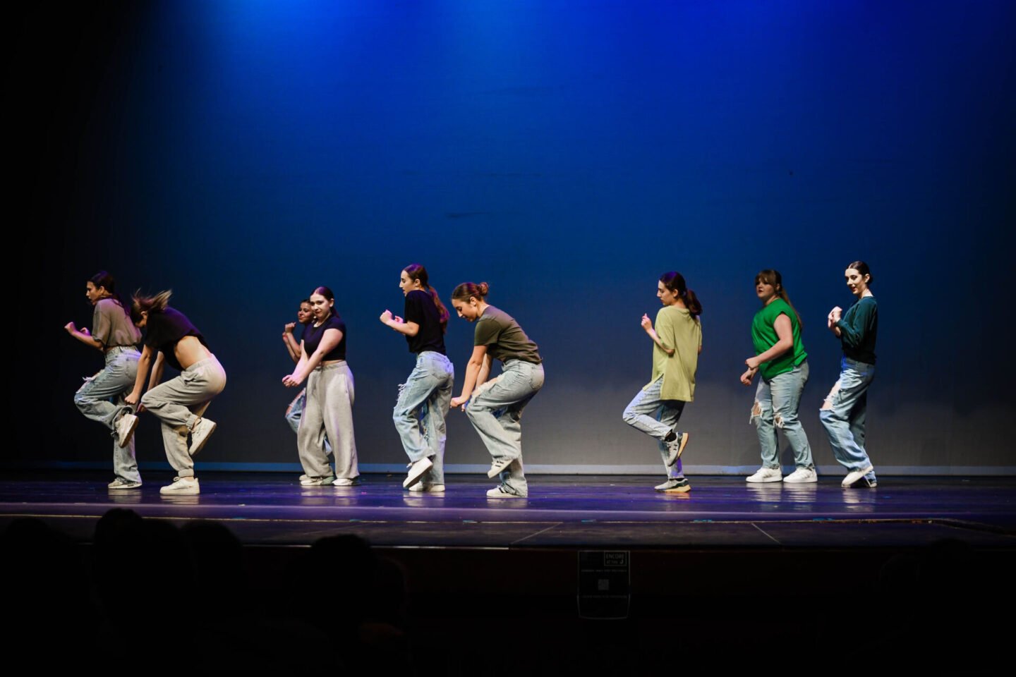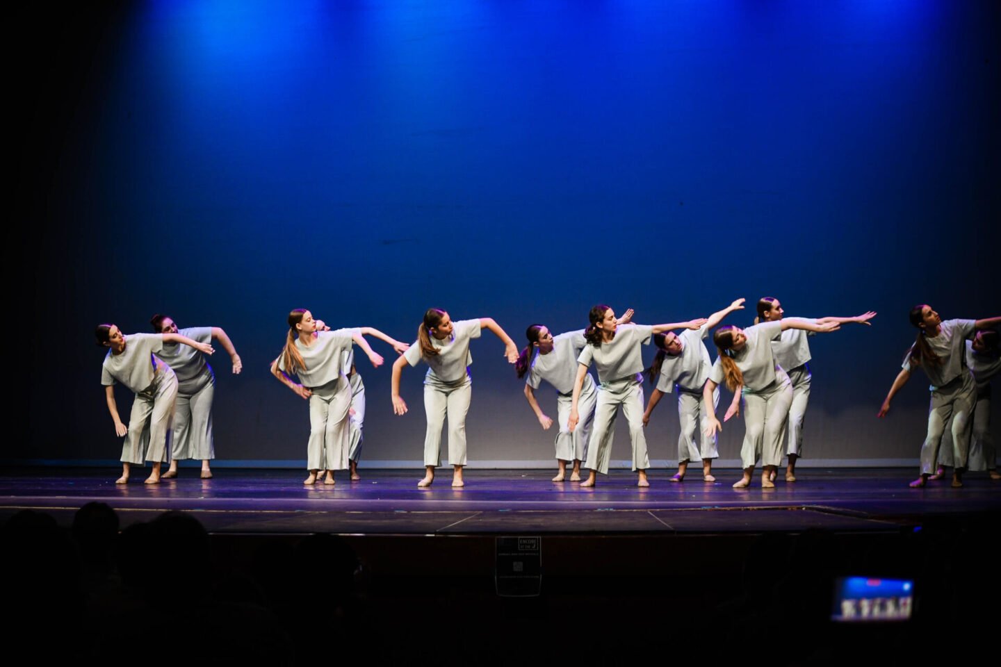 The first dance was tap and there was no music, just the rhythm of the tap shoes and some voices. They did a cute thing where they pretended Gabbie made a mistake and they all said “wrong dance, Gabbie!” and the audience laughed. Gabbie and the other senior are in the middle here, with the different costumes.