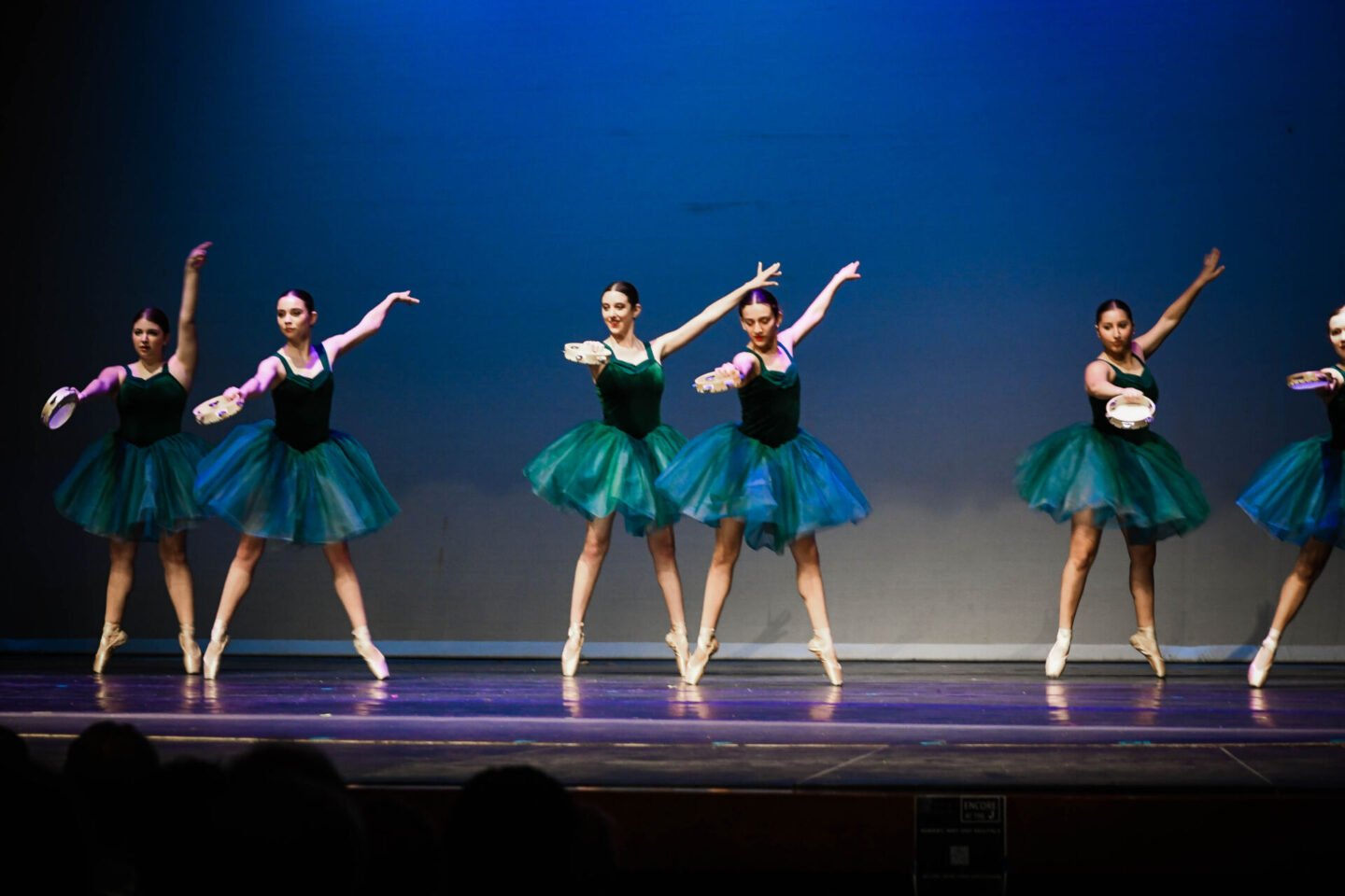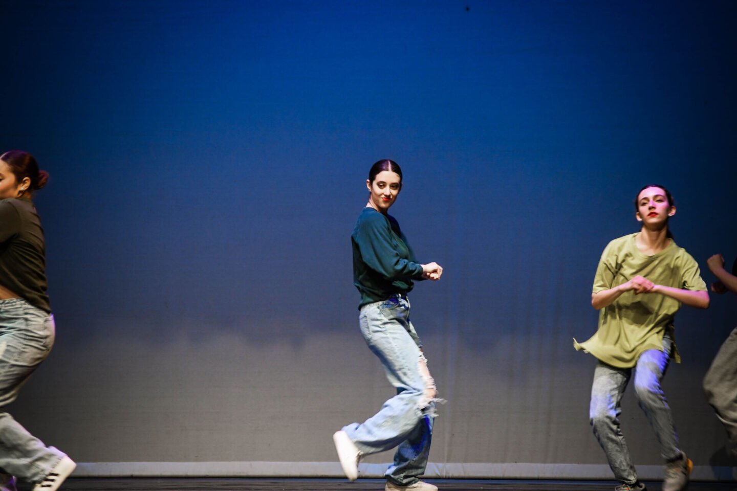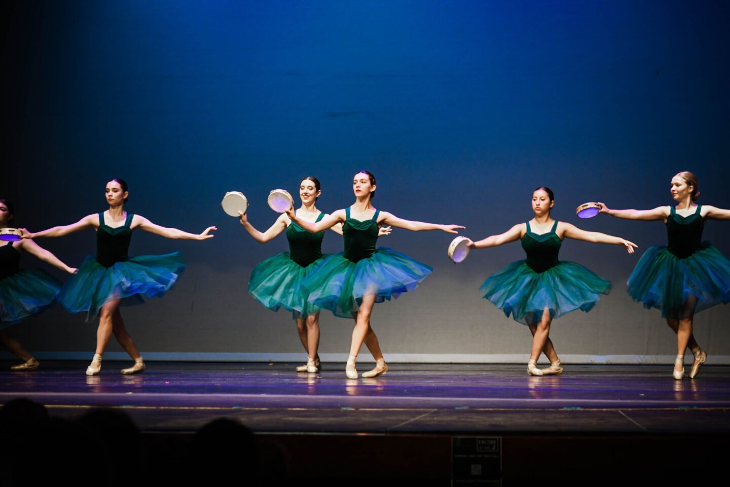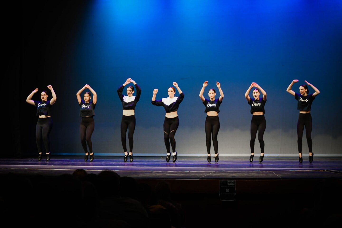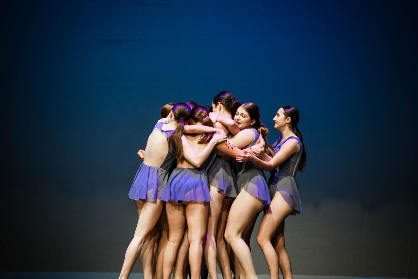 The first dance was tap and there was no music, just the rhythm of the tap shoes and some voices. They did a cute thing where they pretended Gabbie made a mistake and they all said “wrong dance, Gabbie!” and the audience laughed. Gabbie and the other senior are in the middle here, with the different costumes.