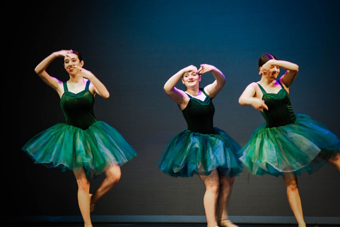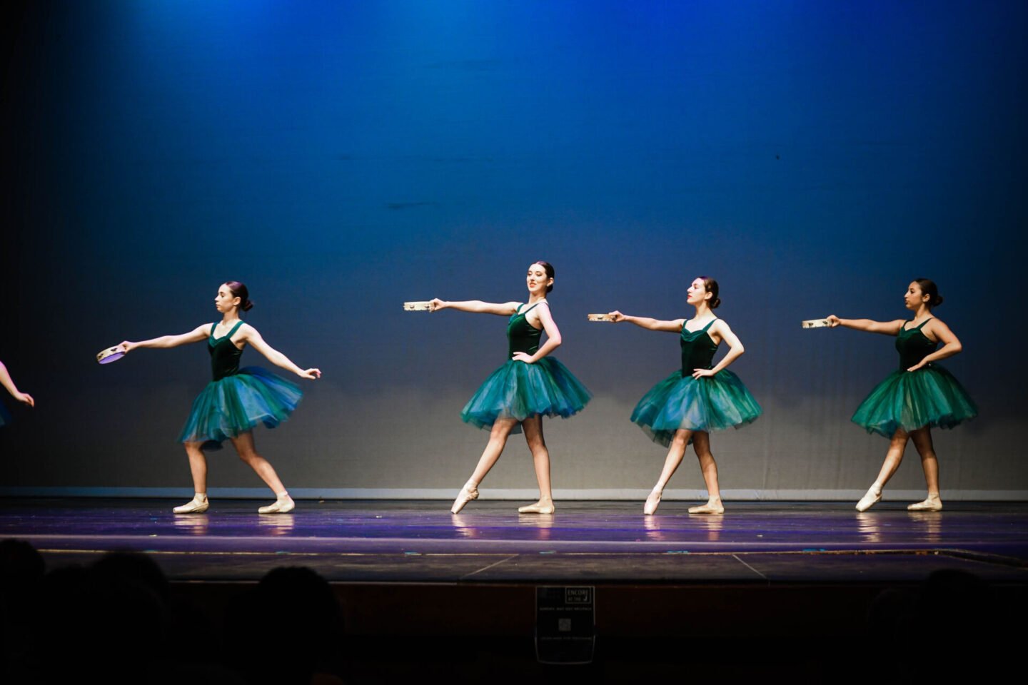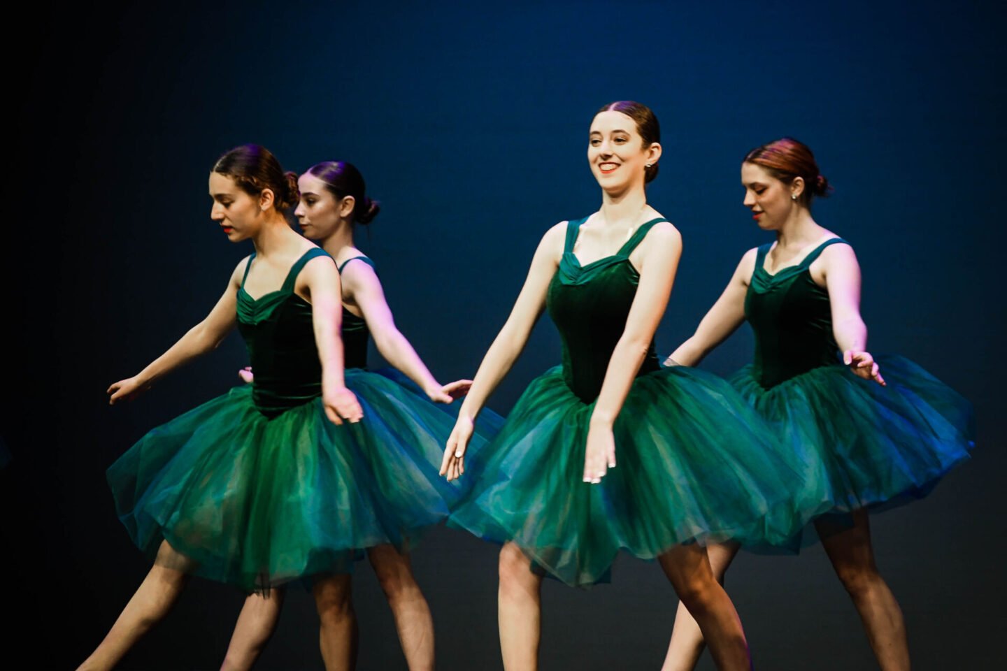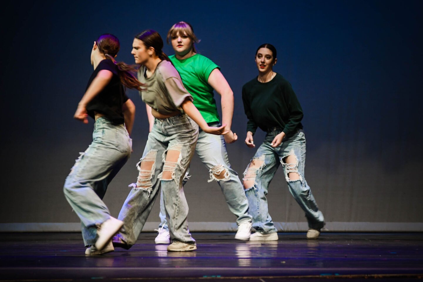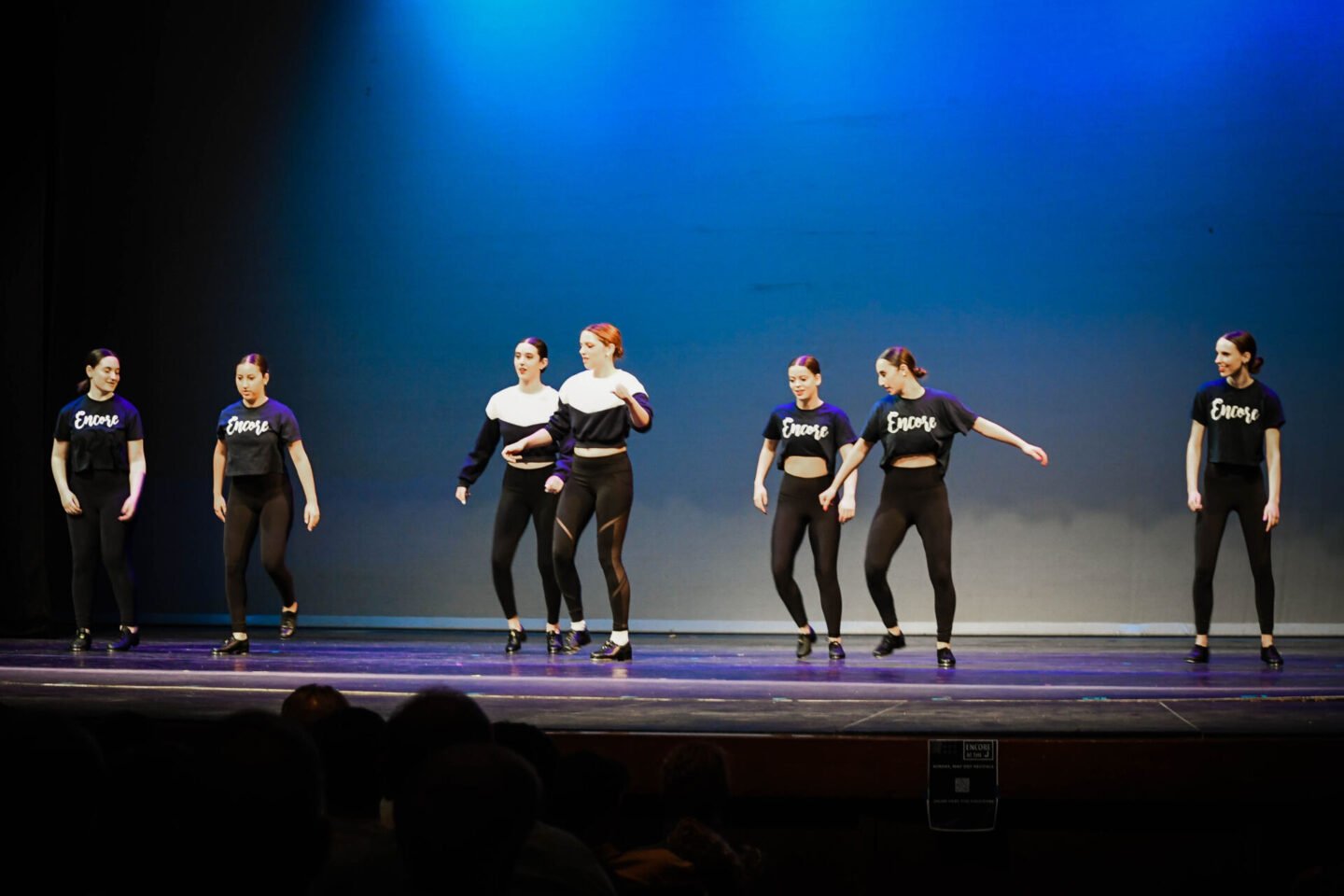 The first dance was tap and there was no music, just the rhythm of the tap shoes and some voices. They did a cute thing where they pretended Gabbie made a mistake and they all said “wrong dance, Gabbie!” and the audience laughed. Gabbie and the other senior are in the middle here, with the different costumes.