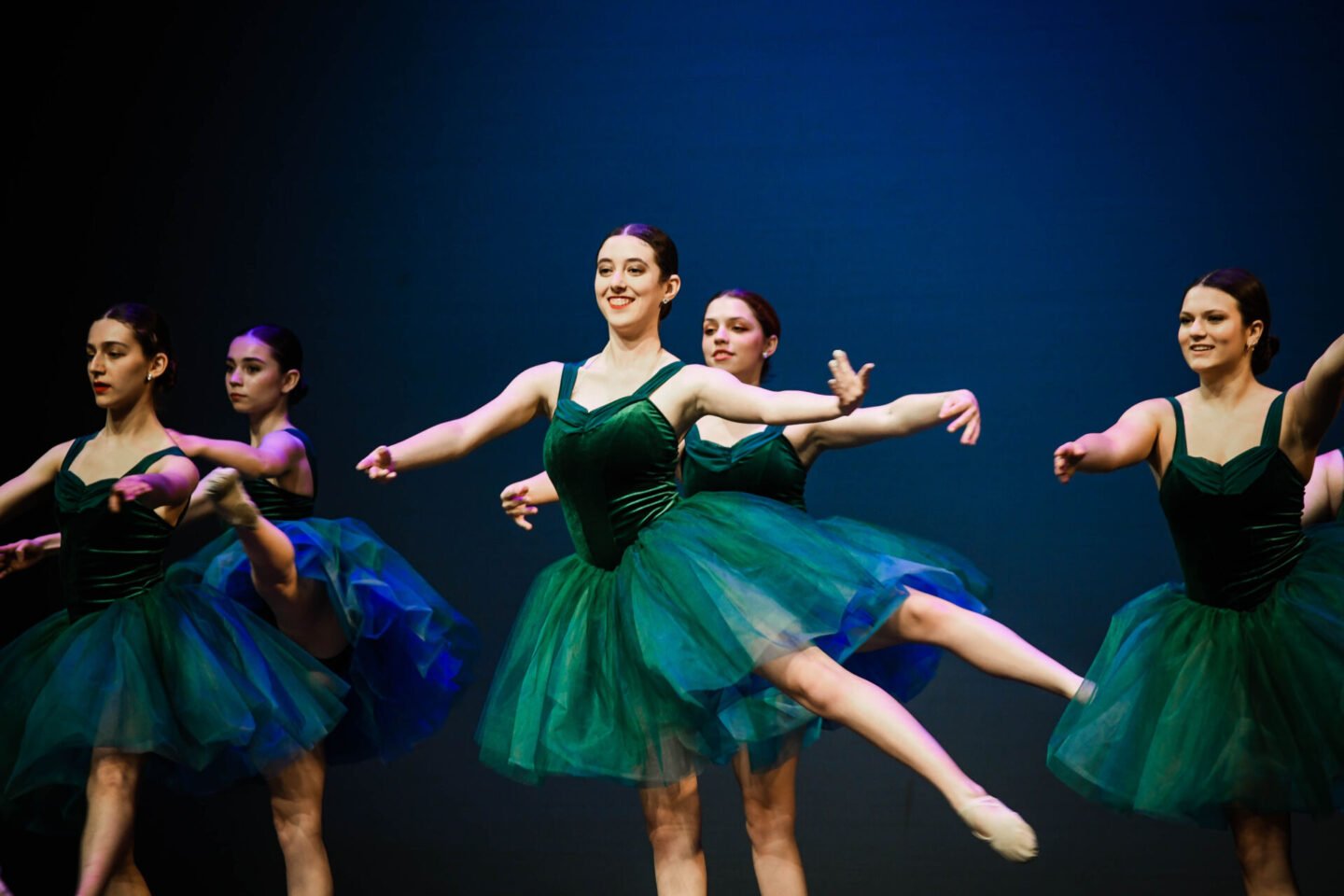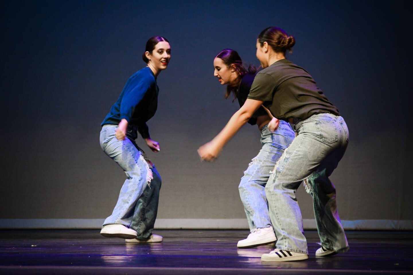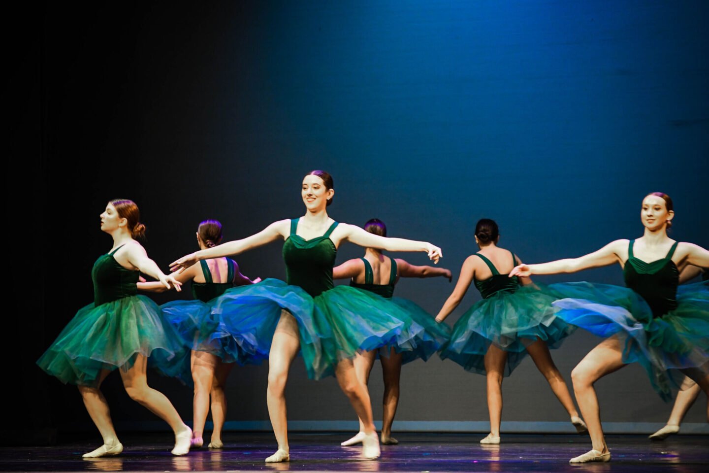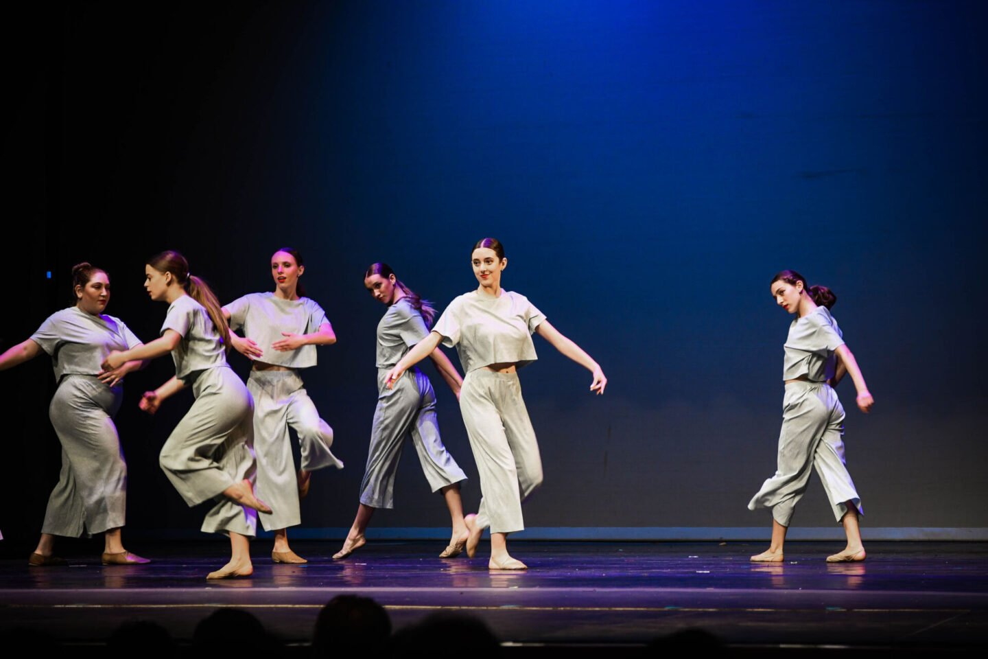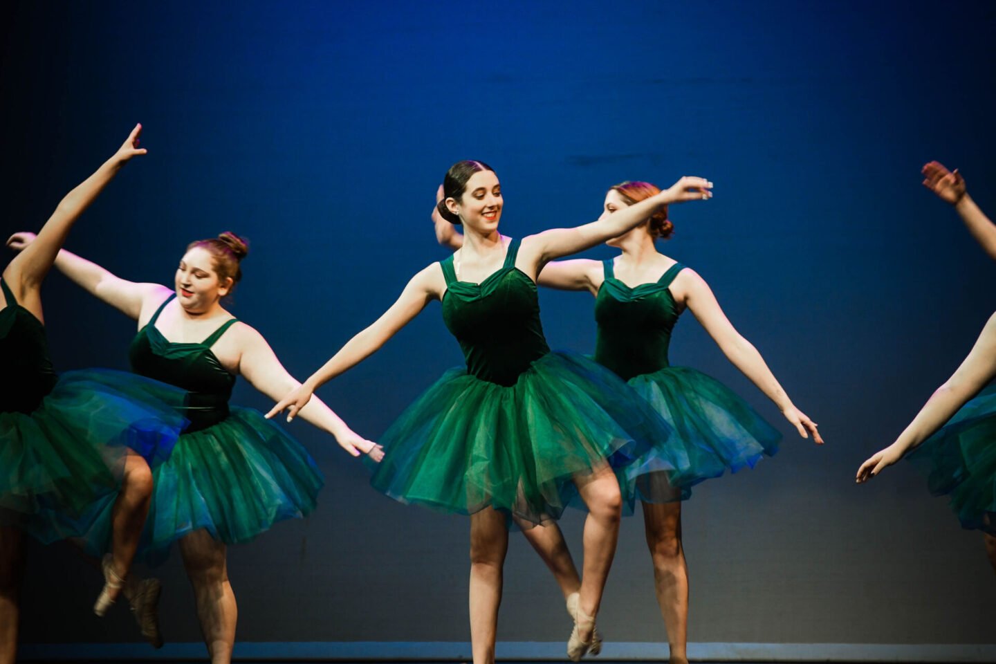 The first dance was tap and there was no music, just the rhythm of the tap shoes and some voices. They did a cute thing where they pretended Gabbie made a mistake and they all said “wrong dance, Gabbie!” and the audience laughed. Gabbie and the other senior are in the middle here, with the different costumes.
