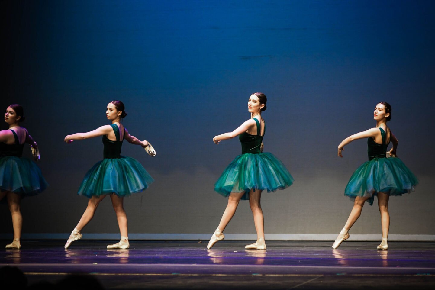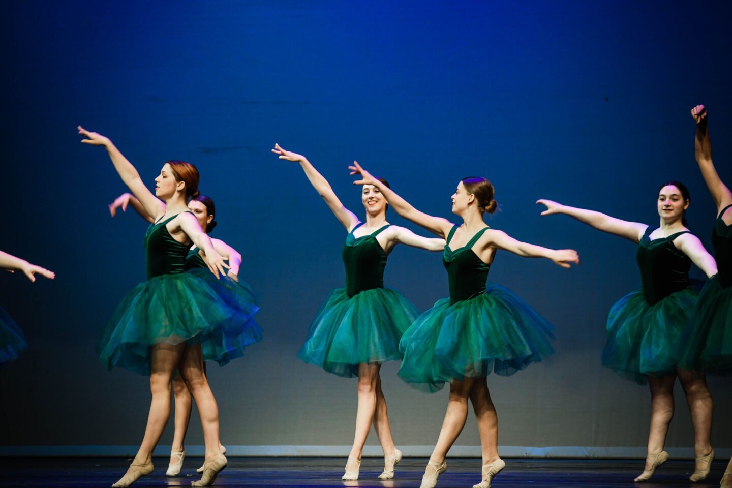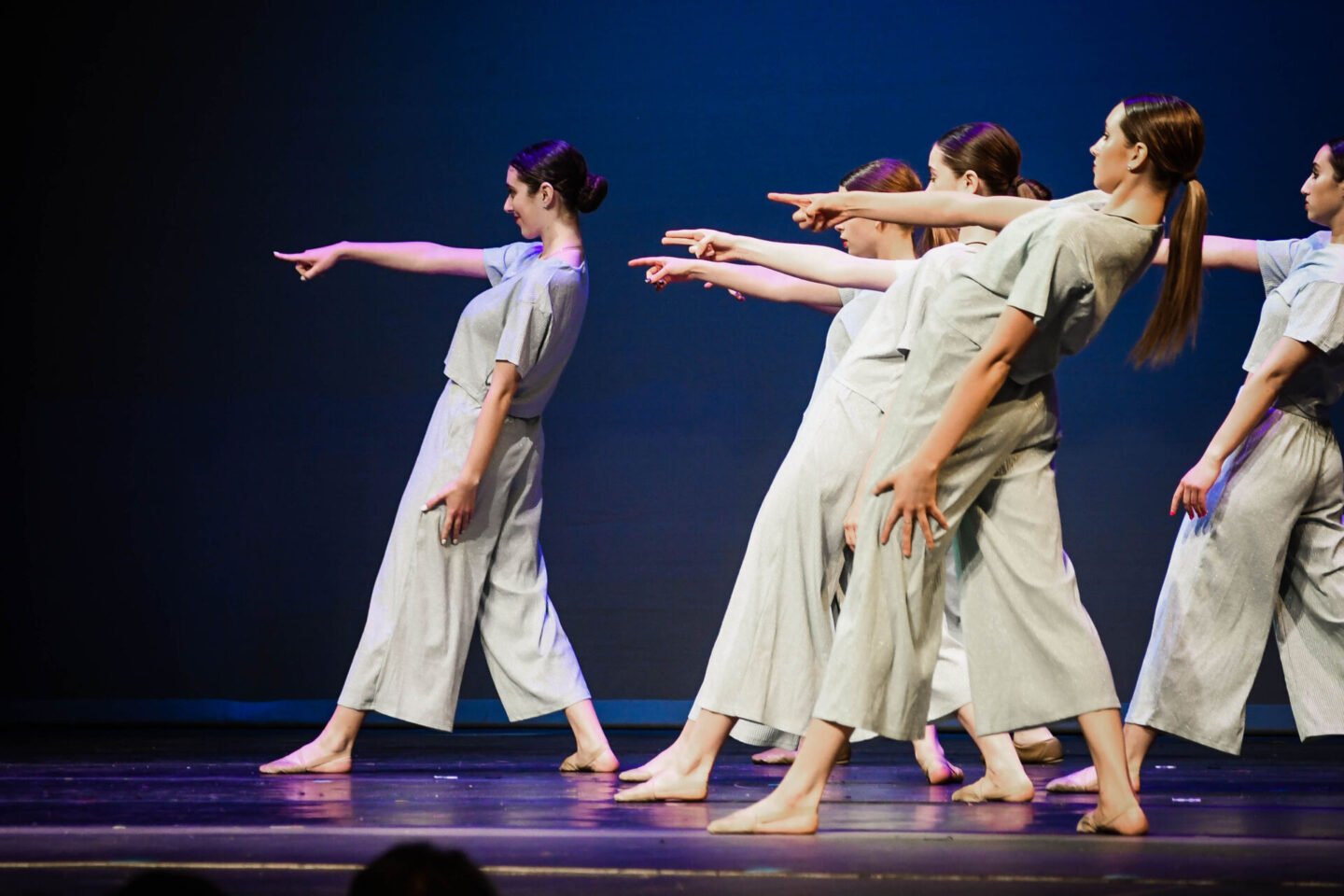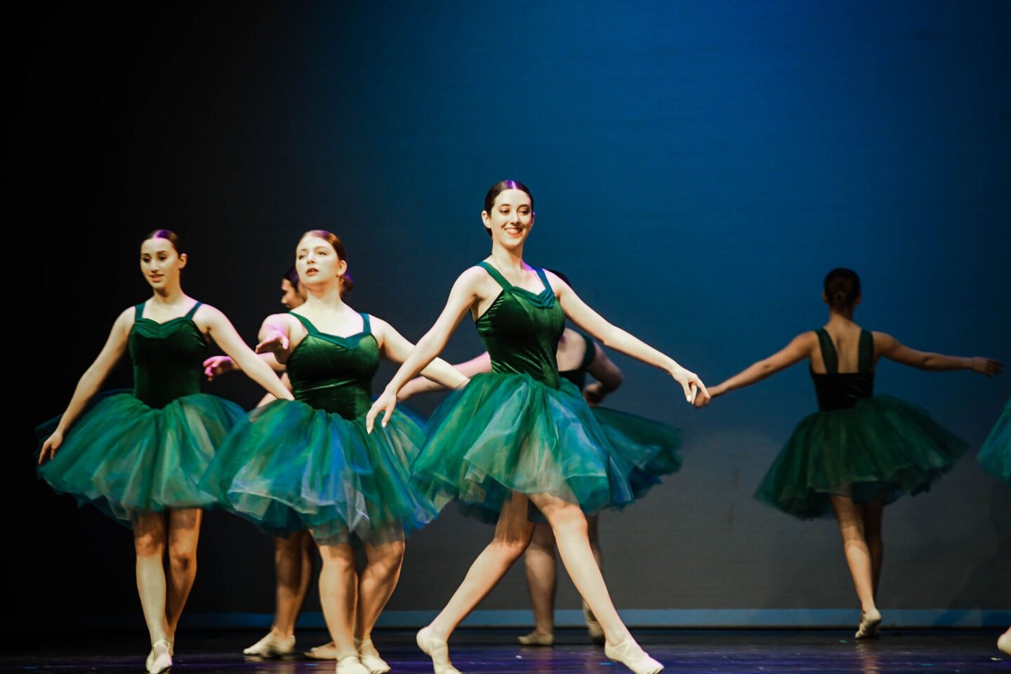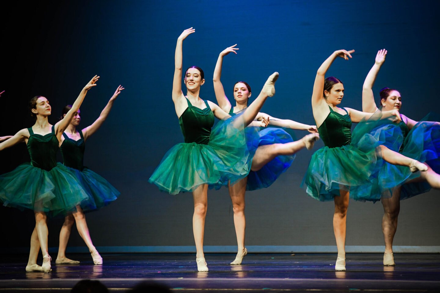 The first dance was tap and there was no music, just the rhythm of the tap shoes and some voices. They did a cute thing where they pretended Gabbie made a mistake and they all said “wrong dance, Gabbie!” and the audience laughed. Gabbie and the other senior are in the middle here, with the different costumes.