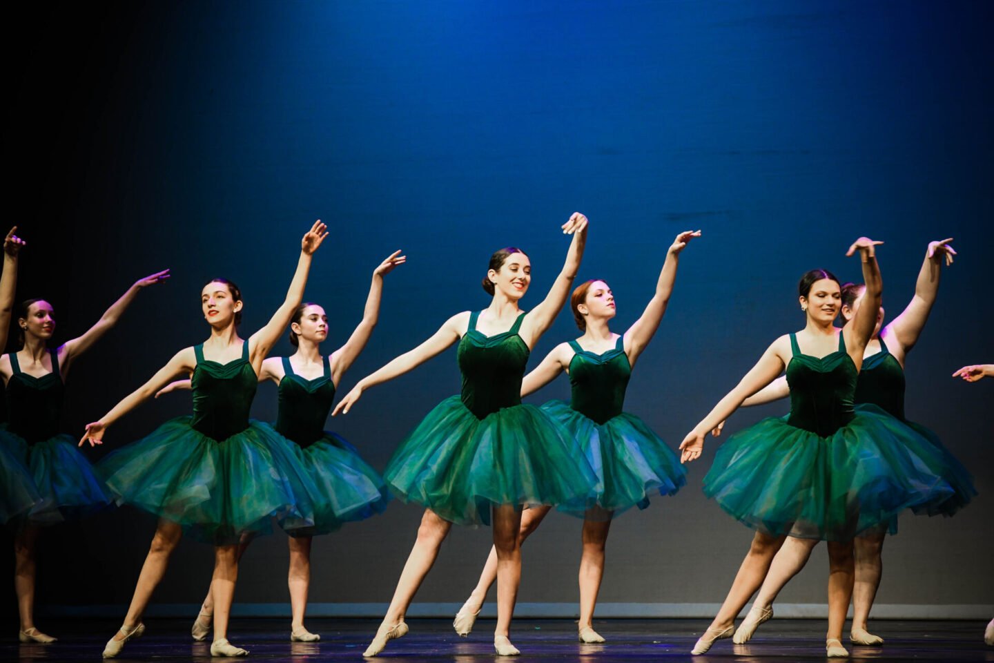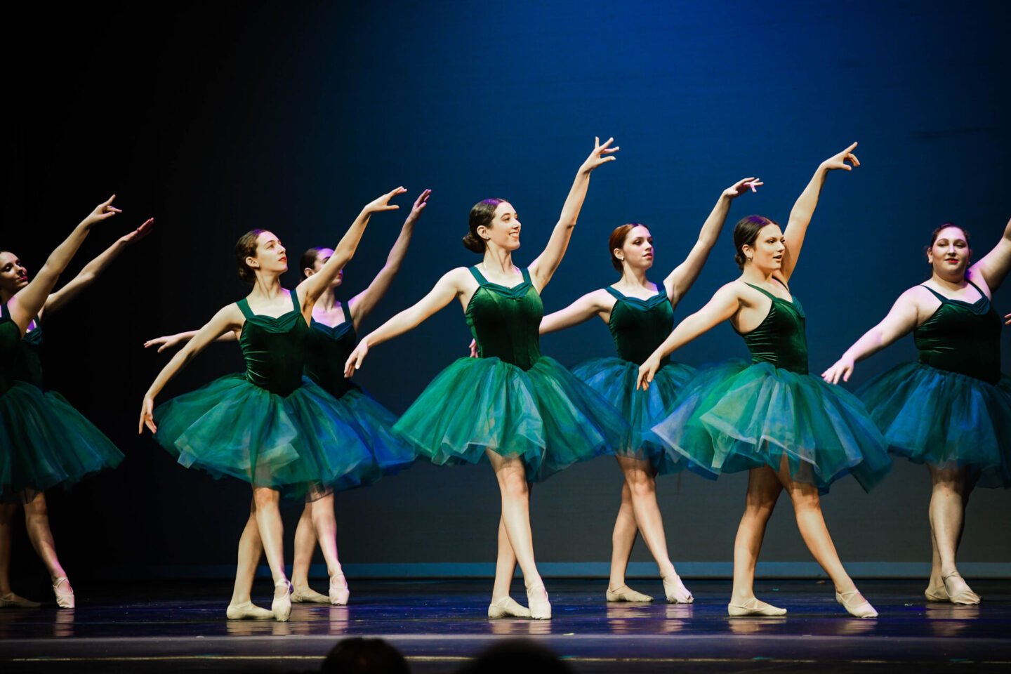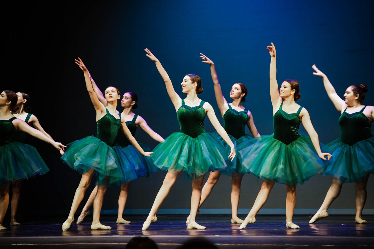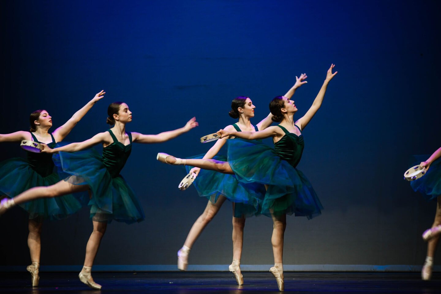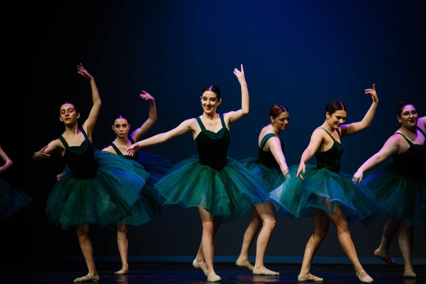 The first dance was tap and there was no music, just the rhythm of the tap shoes and some voices. They did a cute thing where they pretended Gabbie made a mistake and they all said “wrong dance, Gabbie!” and the audience laughed. Gabbie and the other senior are in the middle here, with the different costumes.