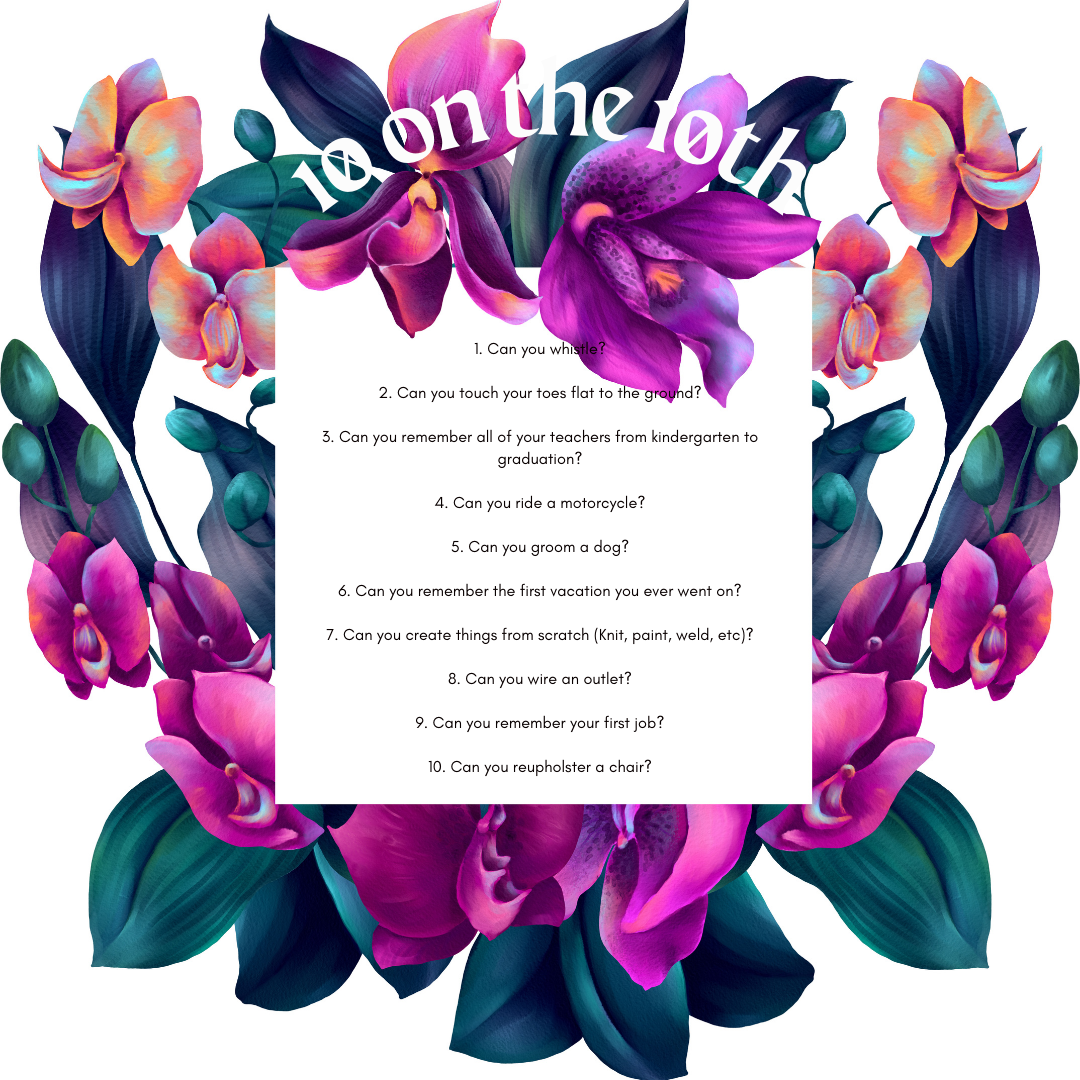 Today I’m linking up with Marsha for the 10 on the 10th link up. This month the questions are about what we can do! Can you?