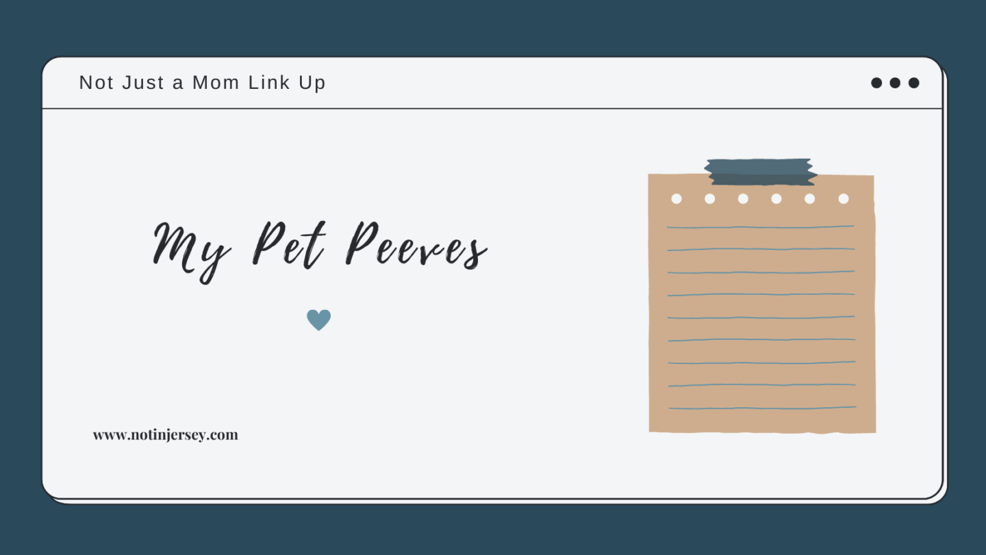 Welcome to the Not Just a Mom Link Up hosted by myself, Adrienne, Jen, Joanne, Lauren, and Sarah! This month, we are talking about our pet peeves. I have to admit, I’ve been thinking about this all month, because I can think of about a million things that annoy me enough to be called a pet peeve! I saw a few people posted on this topic last month already, and that just made me more excited to share my pet peeves here today.