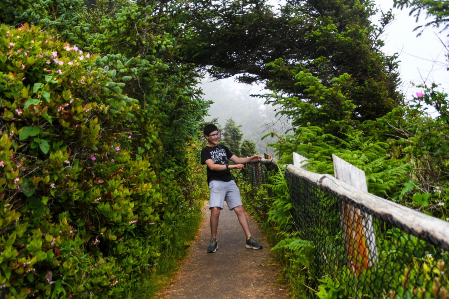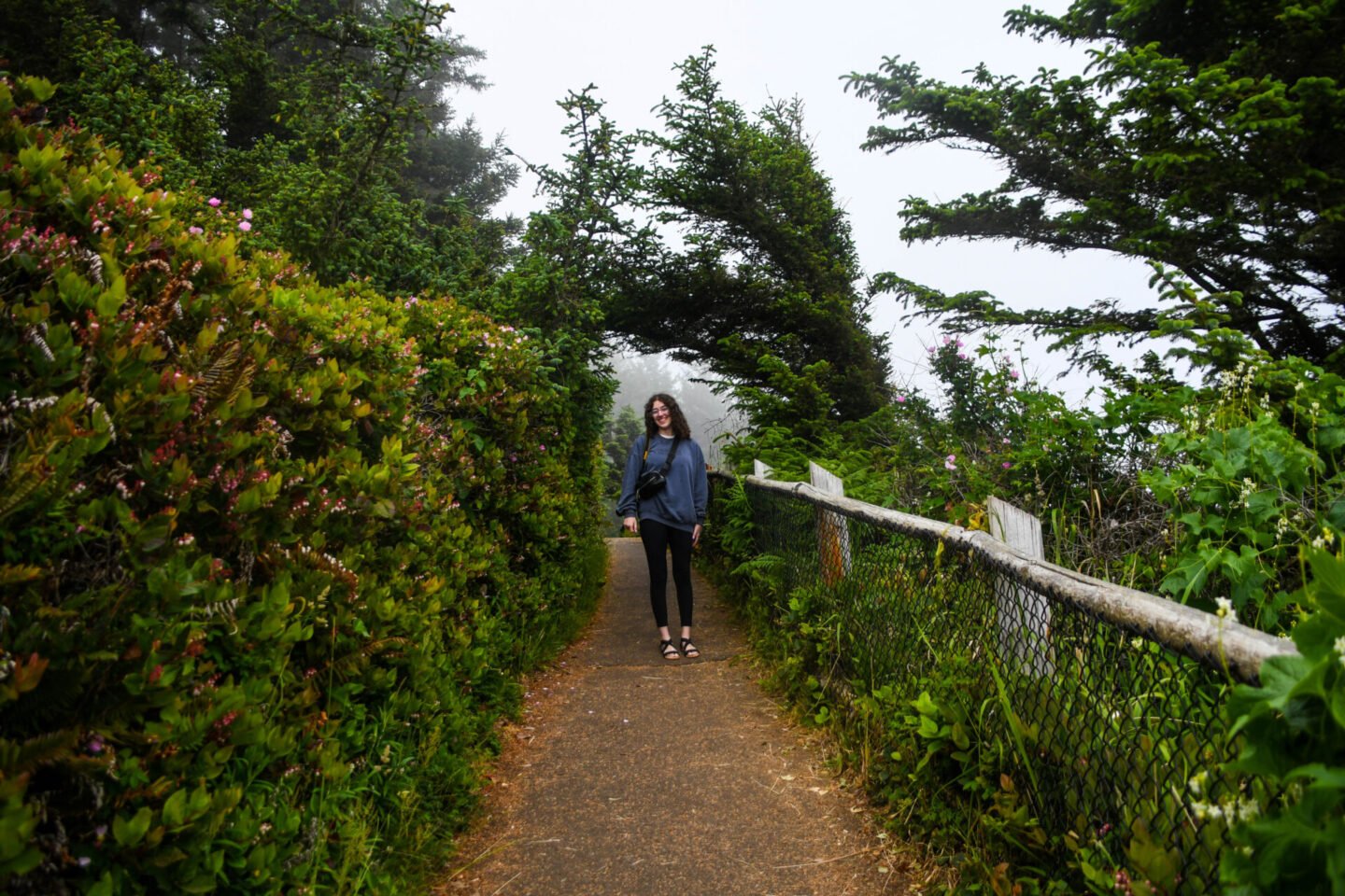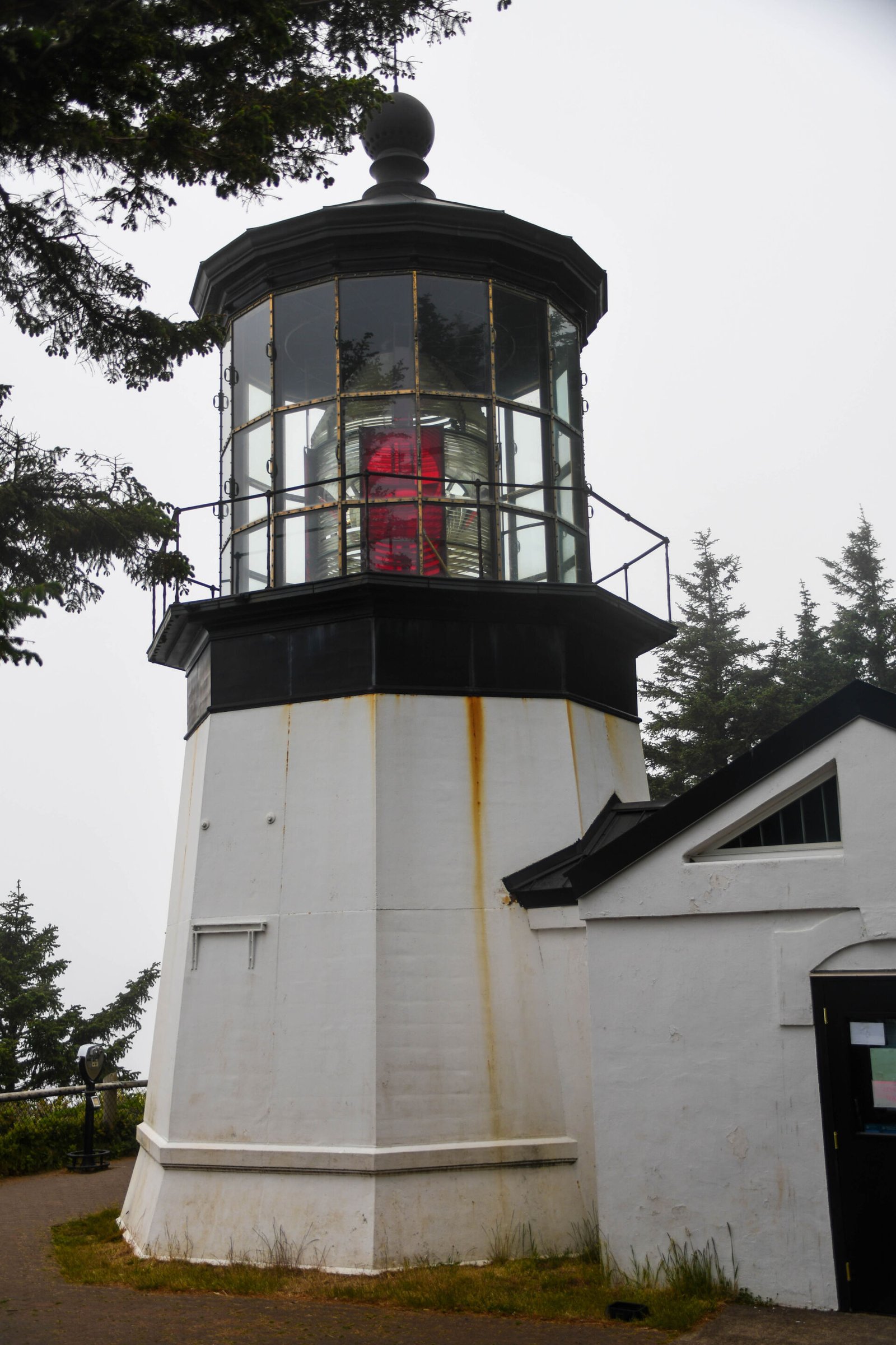 Next, we followed signs to see a lighthouse nearby, the Cape Mears Lighthouse. It was drizzly and the walk through the trees was kind of cool looking!