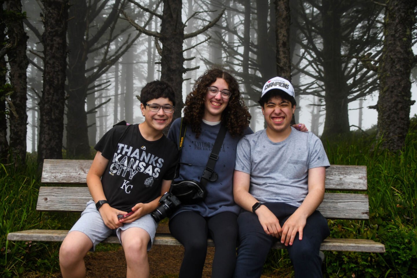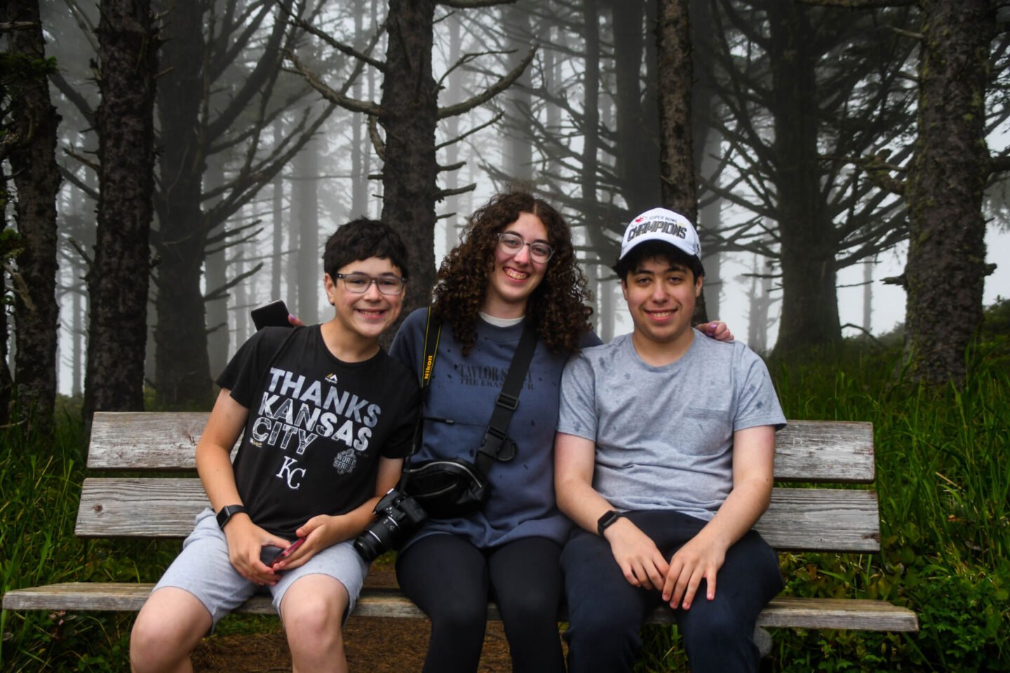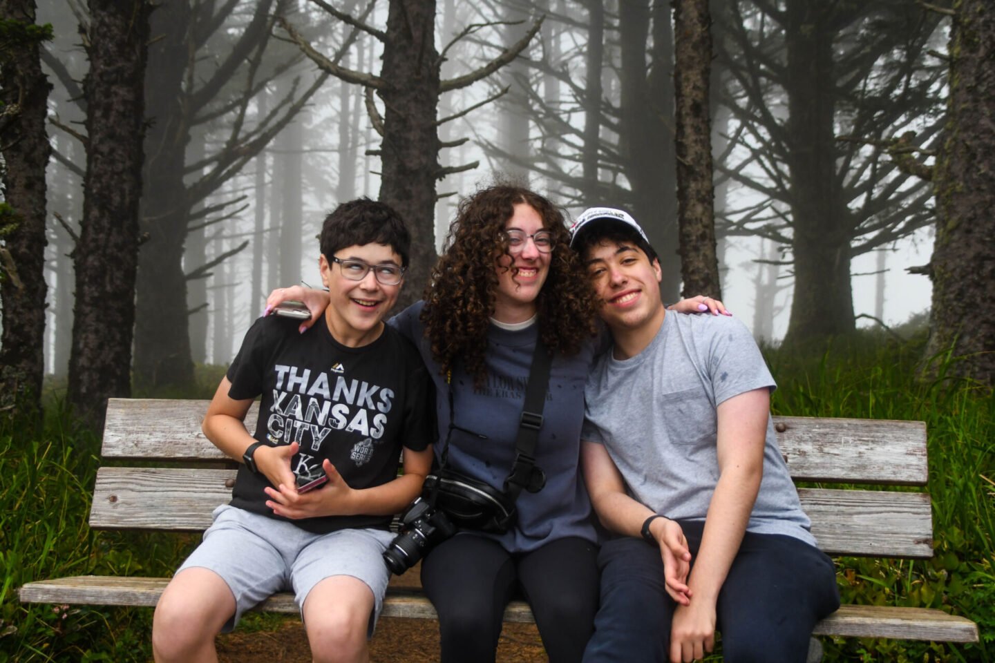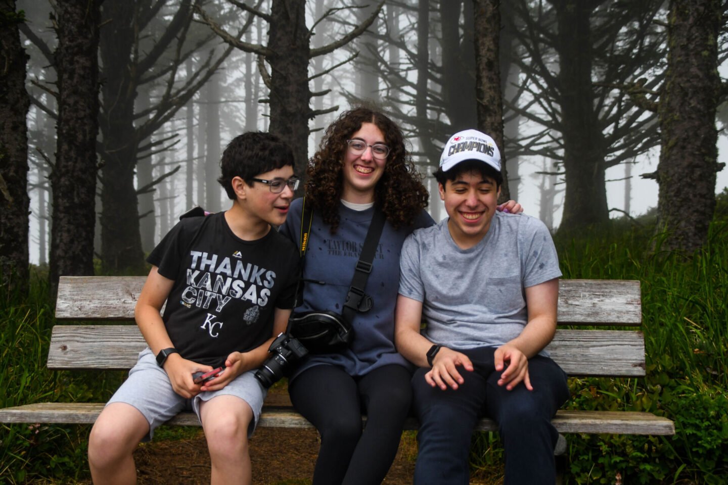 Then they sat on a bench and they even all sat together for pictures.