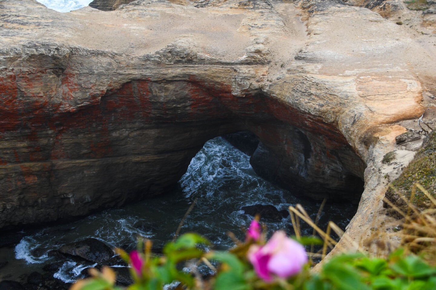One of our Uber drivers in Portland told us to check out something called the Tunnel Beach in Tillamook, so we headed there next. You access it from Oceanside Beach and the tunnel is built into the rocks.