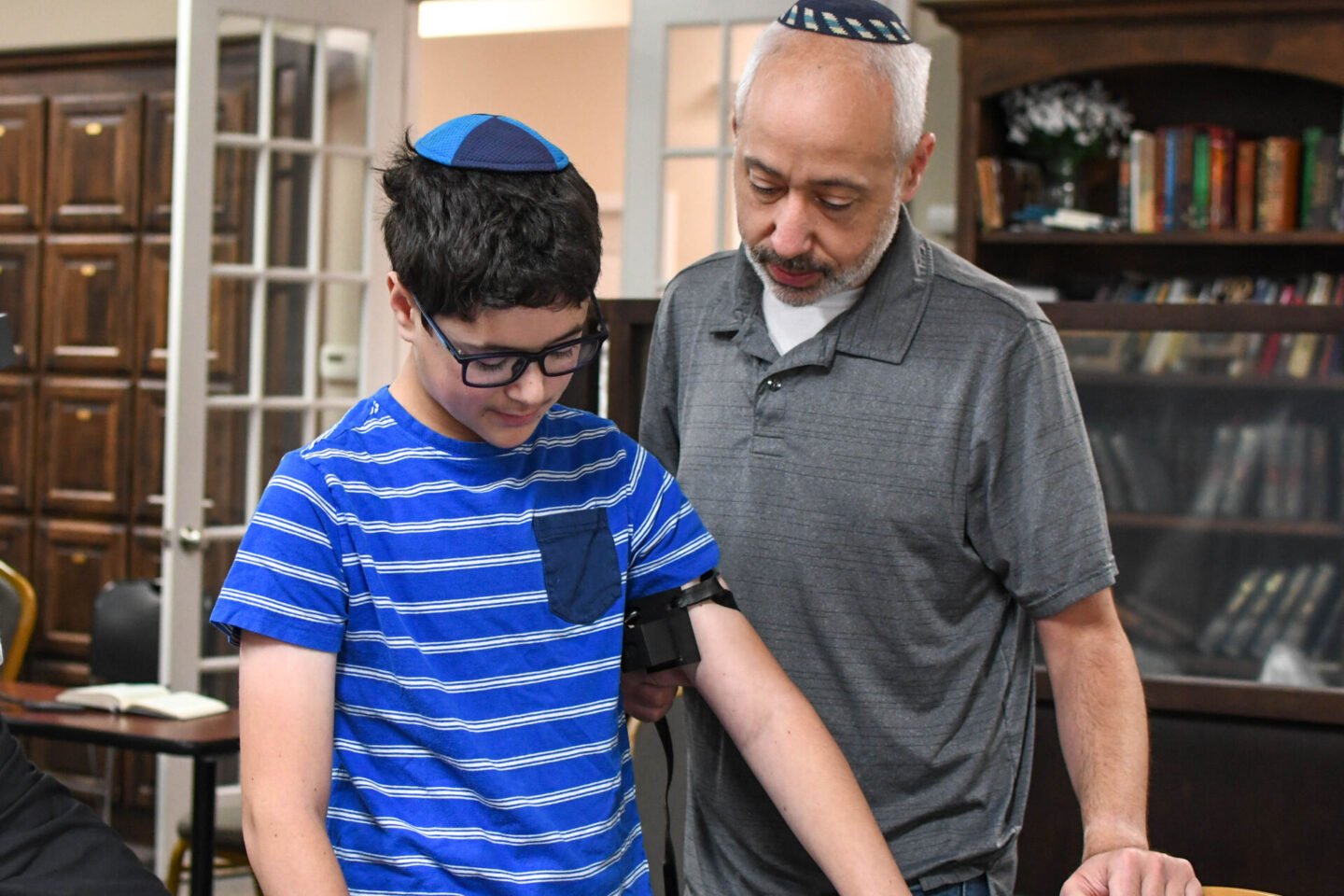 (they wear them on opposite arms because Zachary is lefty)