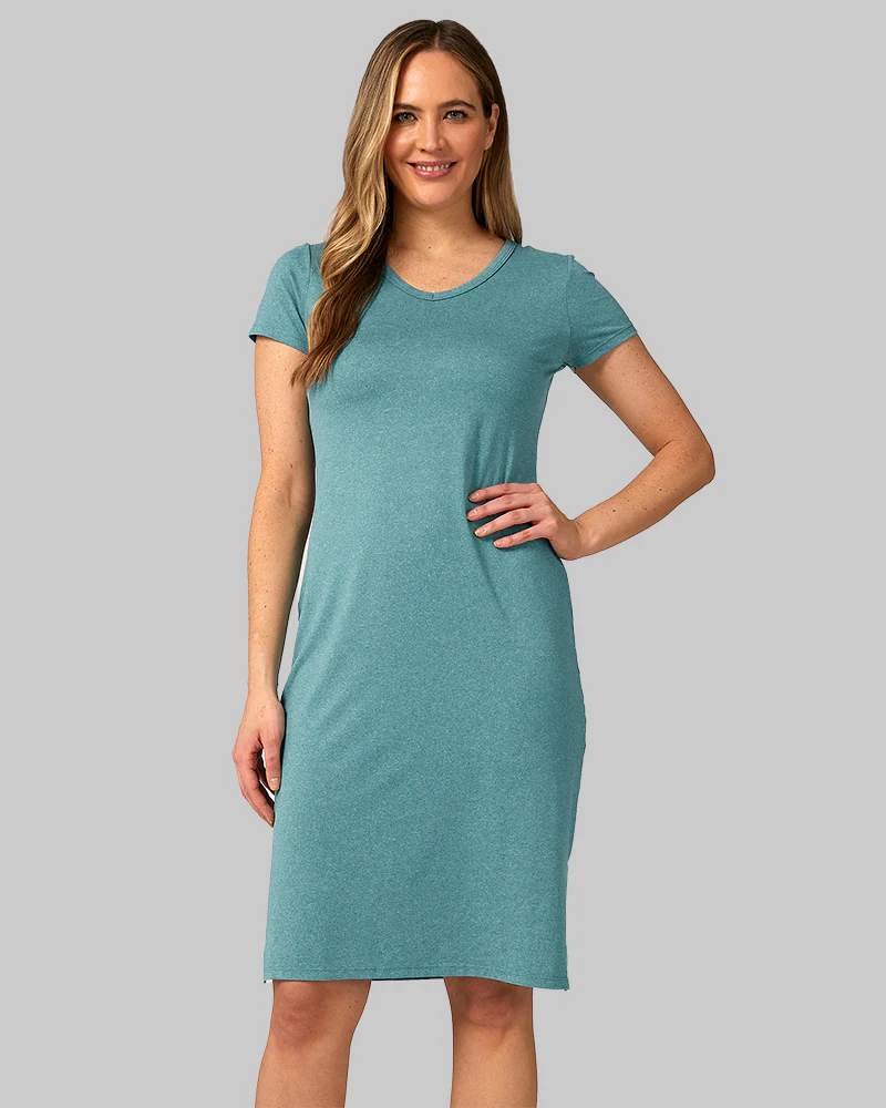 I got this t-shirt dress in biscay bay heather, but it was a bit too tight. There is a $5 return fee but free exchanges, so I ordered it a size bigger in navy, as they didn’t have this color available. Hopefully this one will fit better.