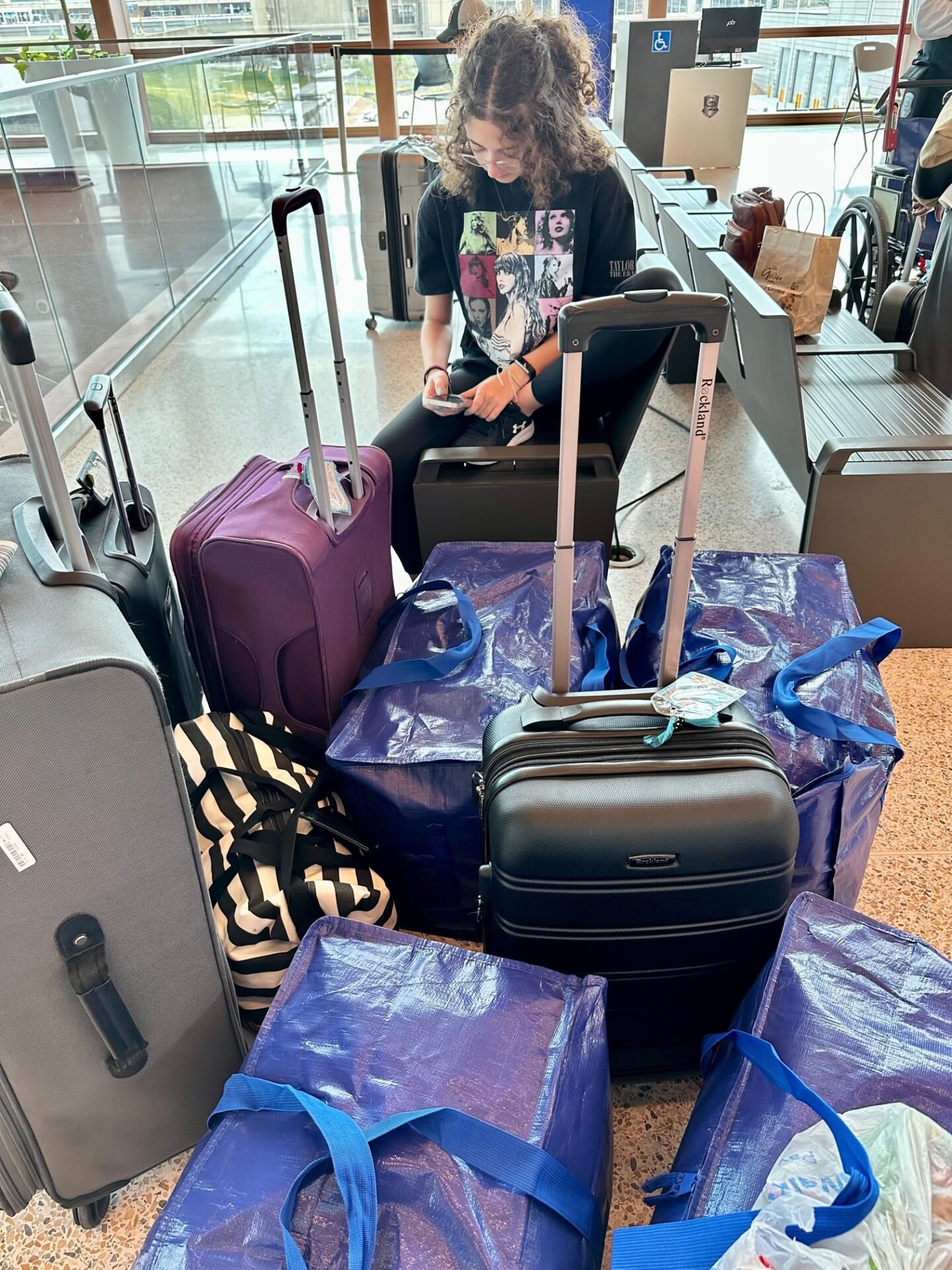 Last week, Dave and I brought Gabbie to her first college move-in. Since she is going to college across the country from where we live, things were a little more complicated as far as getting everything there. Since Dave’s parents were here for Simon’s Bar Mitzvah, they stayed with the boys and Dave, Gabbie, and I flew to NY, where we rented a car and drove up to UMass Amherst. Here is Gabbie and all of the bags at the Kansas City Airport before we checked in!