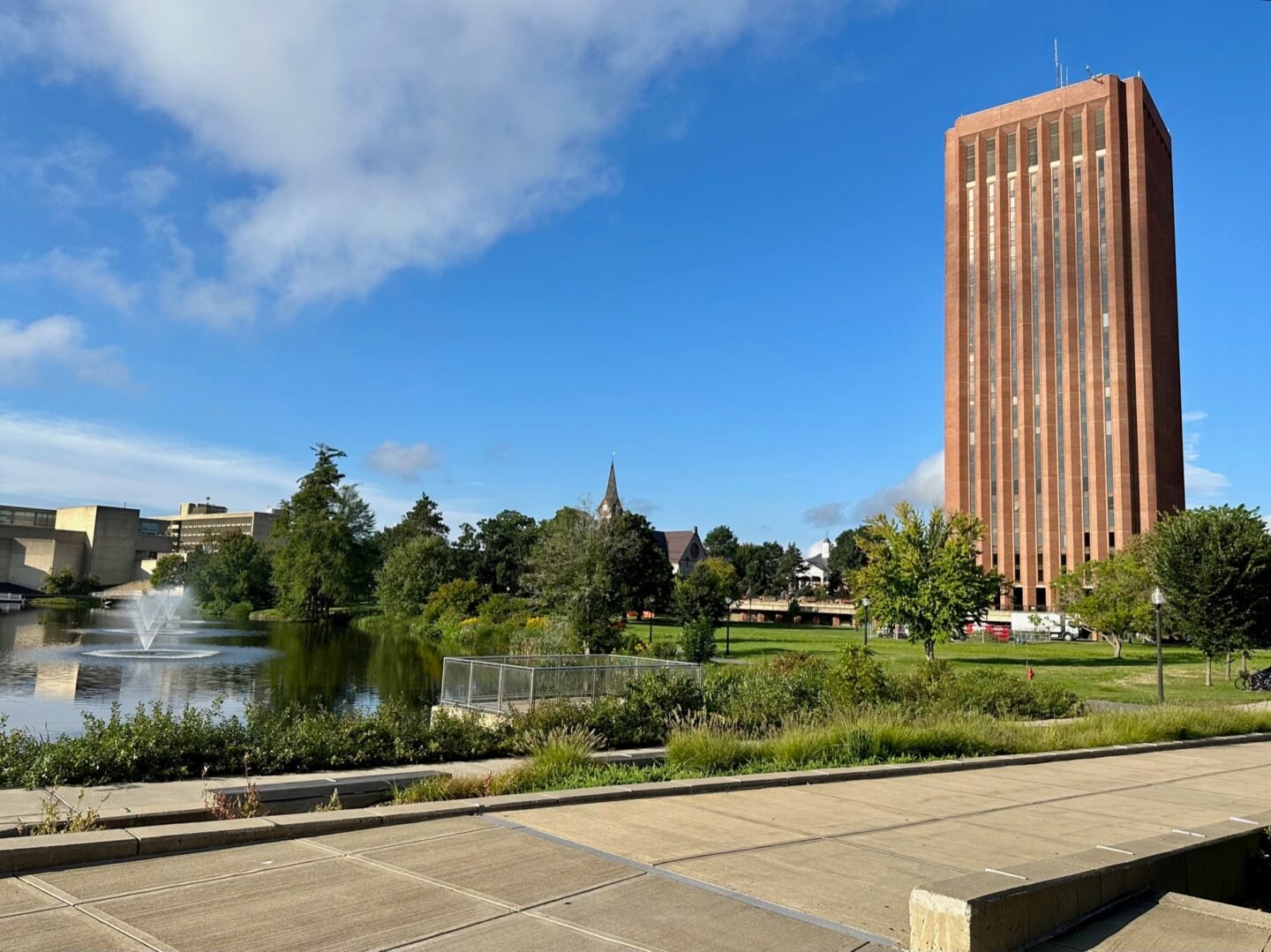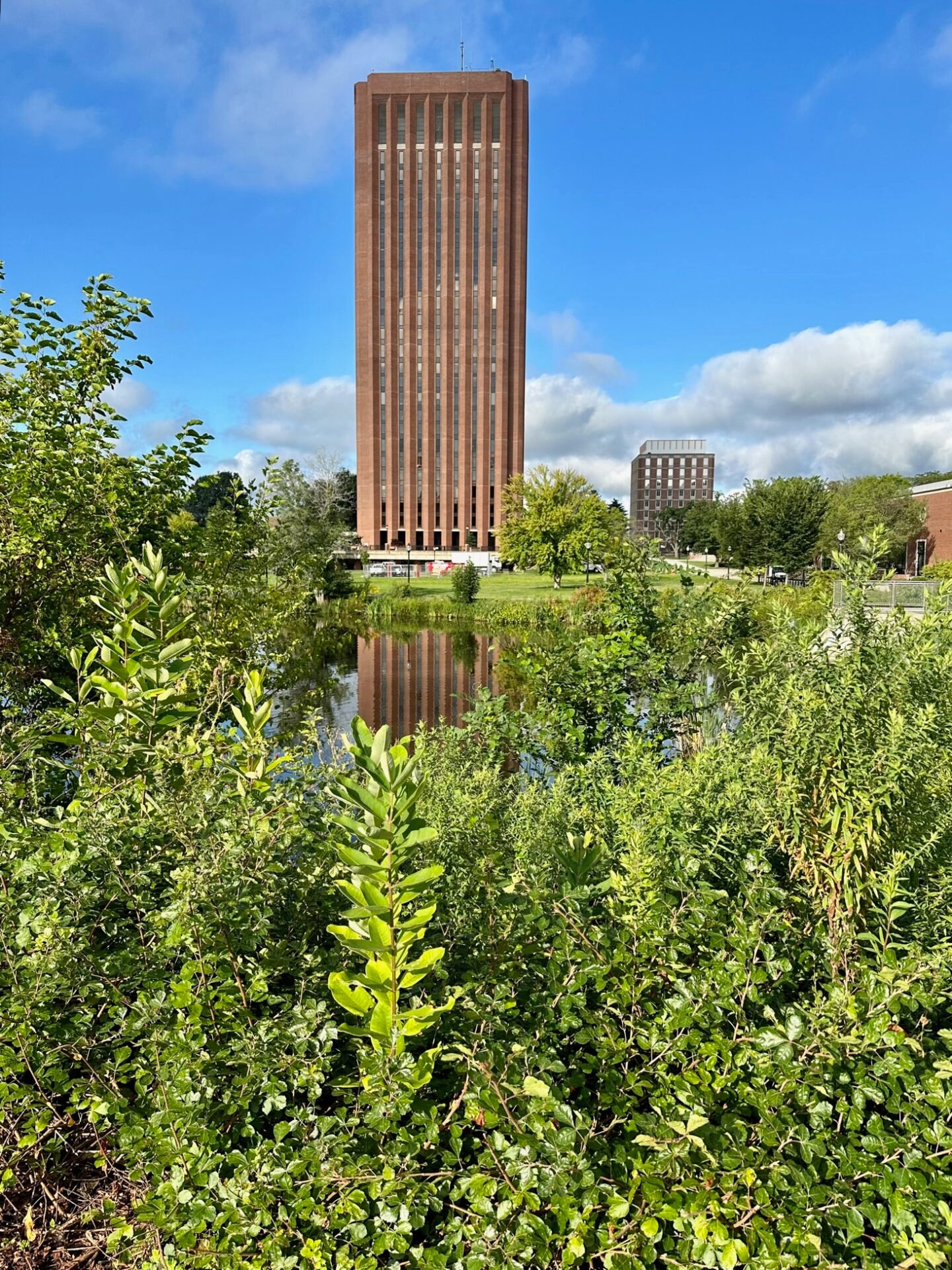 Gabbie did early move-in, which was convenient and eliminated a lot of stress in my opinion! She participated in an early orientation for Jewish students with the Jewish on campus organization and that also helped with her meeting new friends. But first, we walked around campus and got the lay of the land. The tall building is the library.
