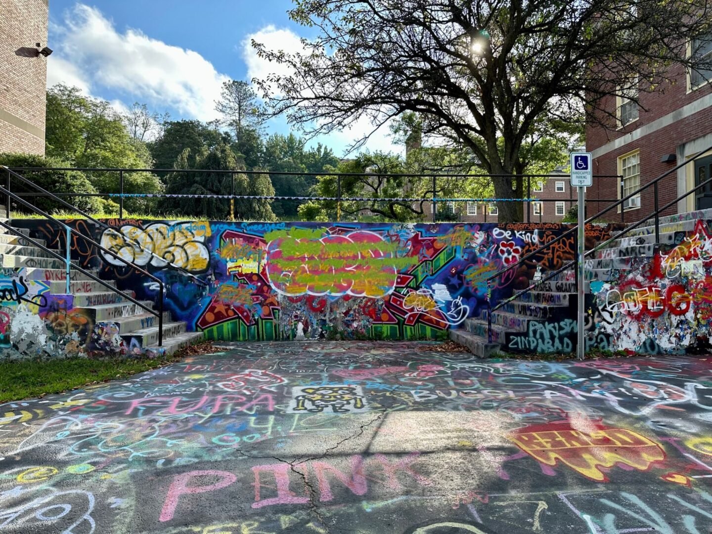 She’s a the top of a huge hill, which should make her strong with walking up it every day. This graffiti wall showed me which way to go.