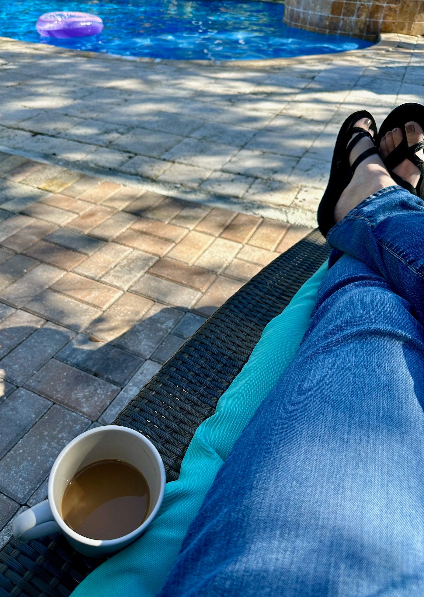 Coffee by the pool at our Air BnB