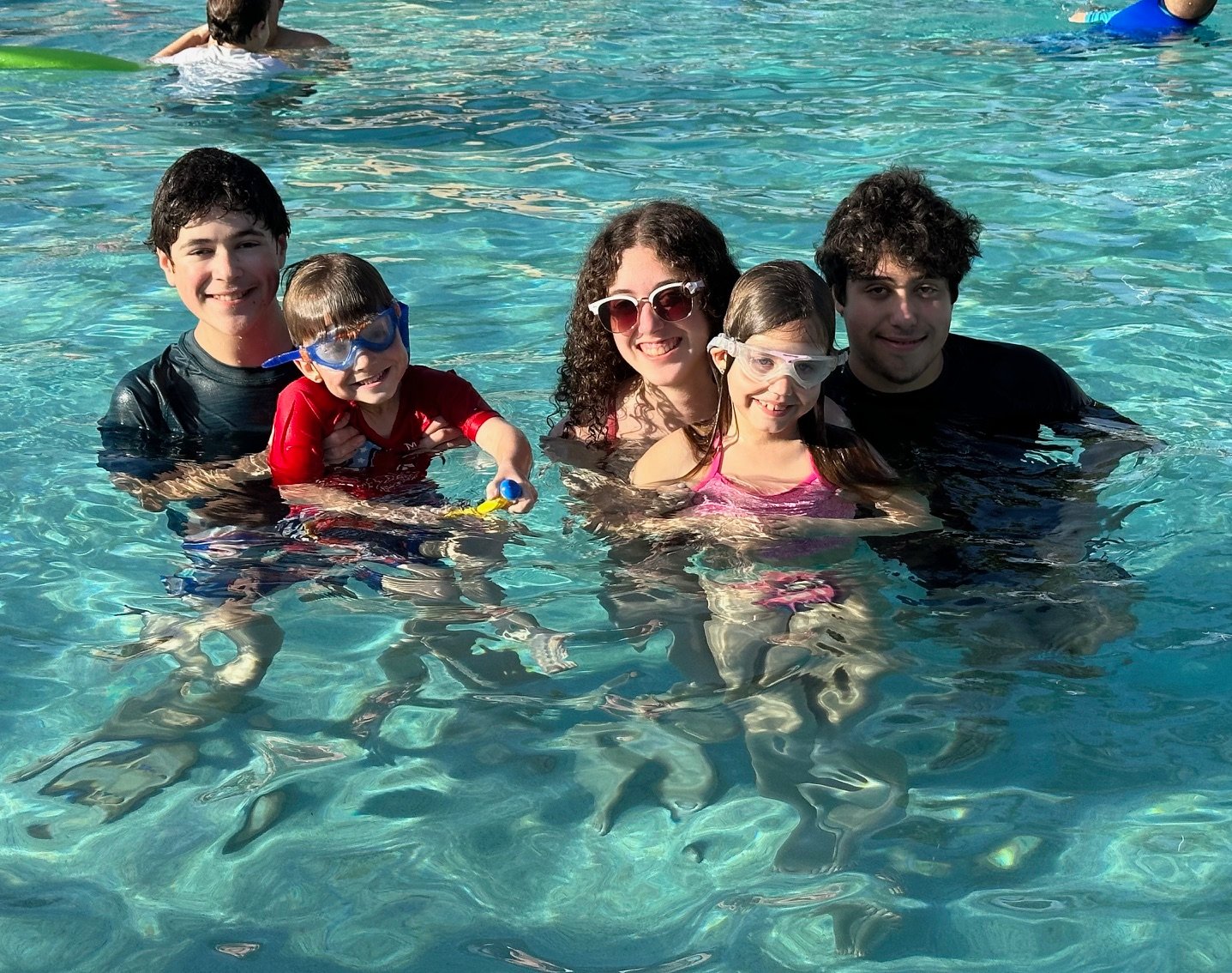 We headed straight to the pool in my parents’ neighborhood, where we met up with my brother and my niece and nephew! It is so amazing that after not having seen them since before Covid, we were able to see them 3 times in 2023. I hope that keeps up this coming year too. Everyone got in the pool but me – it was actually warm outside!