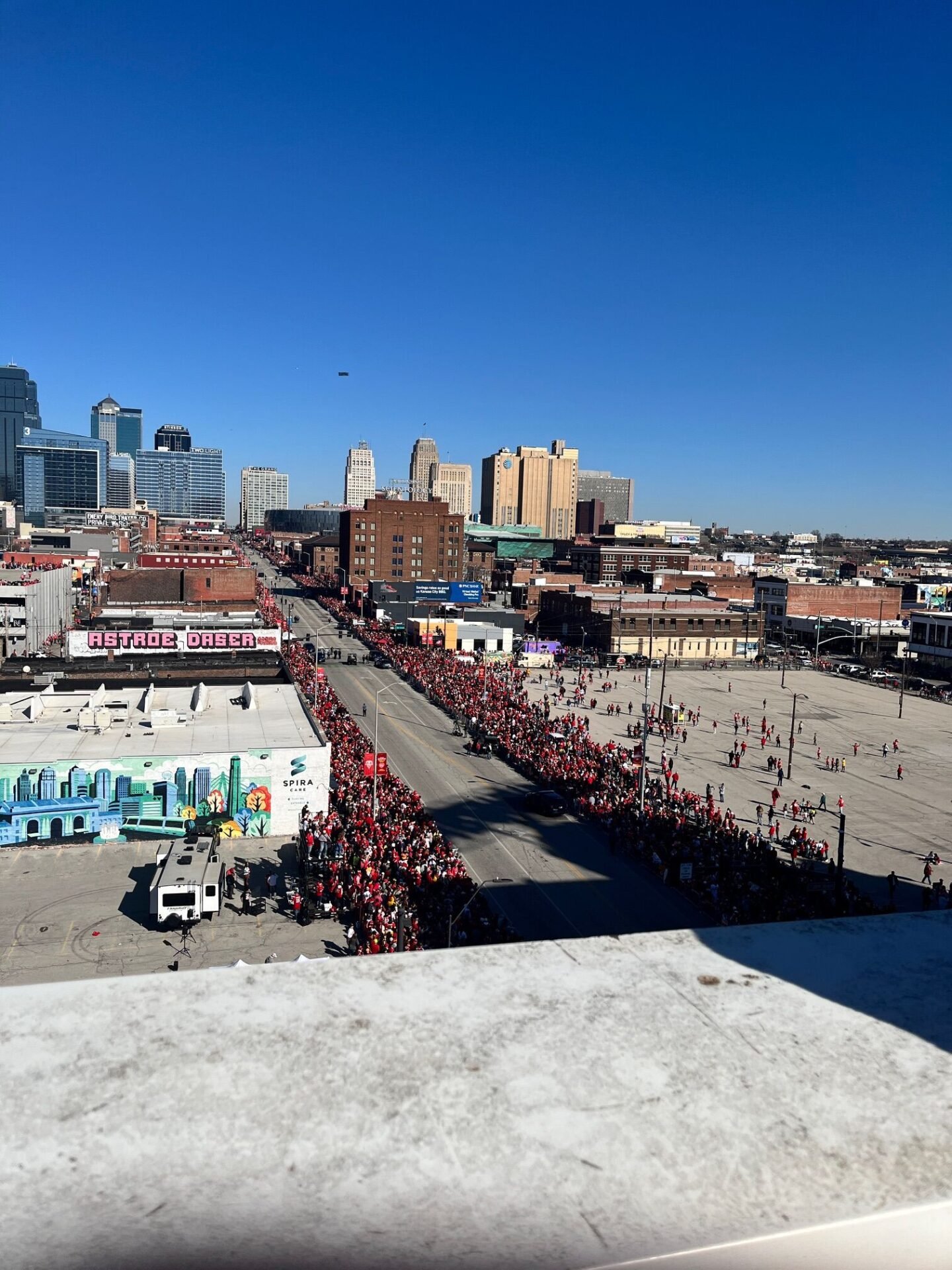 The boys and their friends went to the Super Bowl parade. Dave was out of town and I didn’t feel like going so we allowed them to go on their own. They took the bus. They ended up meeting up with our friend who works downtown and he let them into his office to watch from there. They also went onto the roof for a bit.