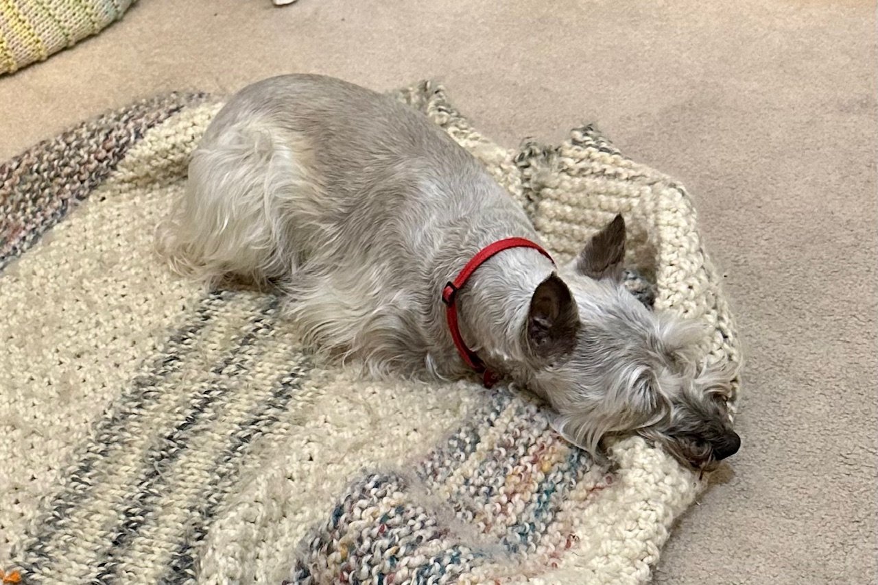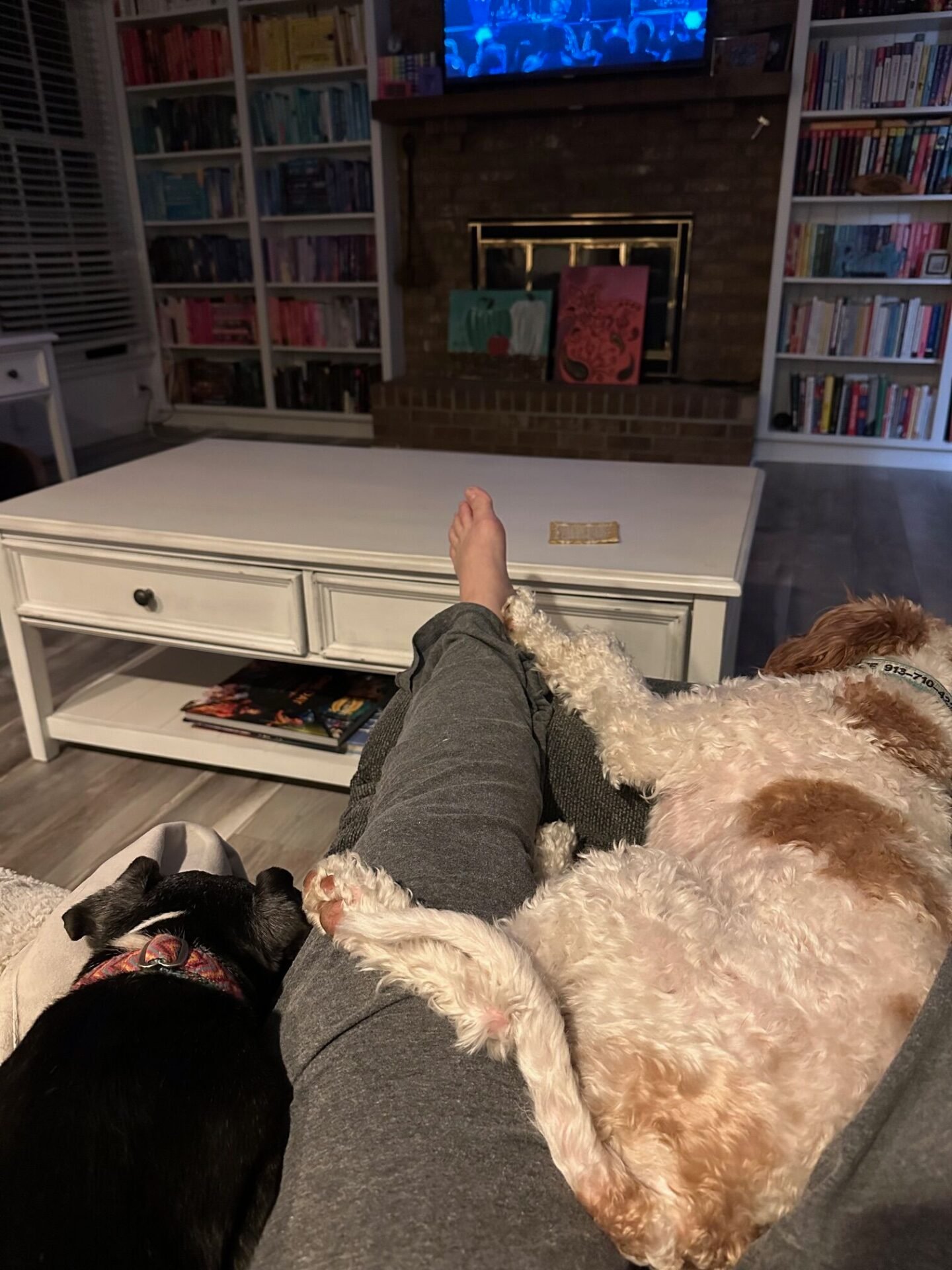 Last week I was really excited to watch Billy Joel’s 100th MSG concert special. I was disappointed though because they rearranged the order of the songs he performed and cut out the encore entirely, not to mention the news cutting in during the last song they were playing! They are replaying the show tonight for those who care. When I sit on the couch while dog sitting, it looks a bit like this.