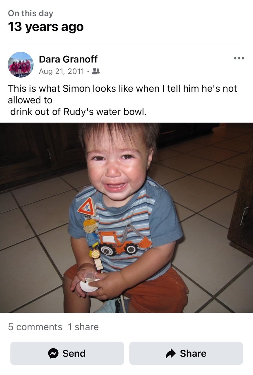Speaking of Simon being amusing, this came up in my Facebook memories. I had just been talking about it too.