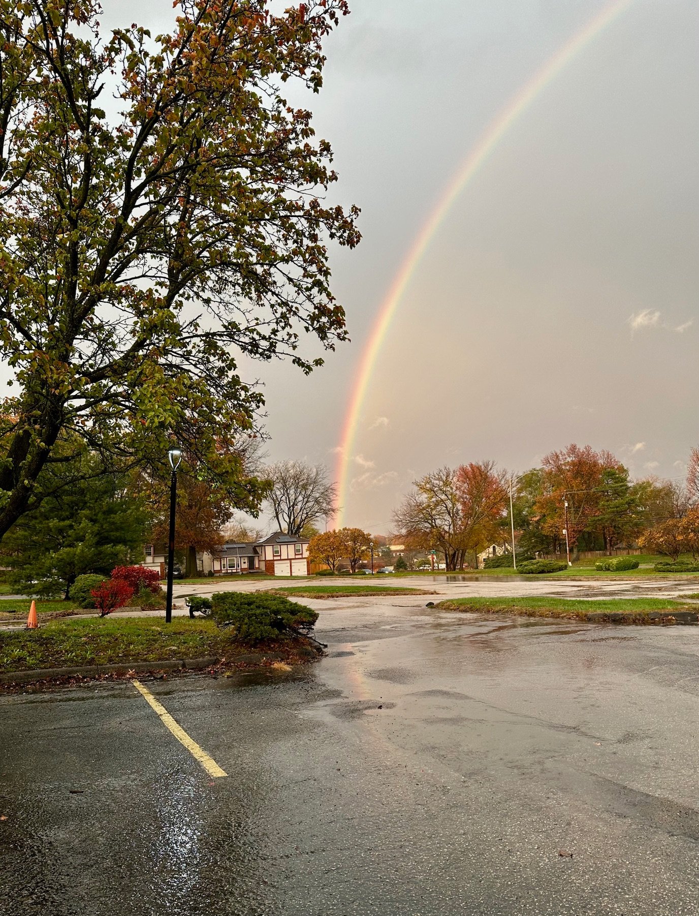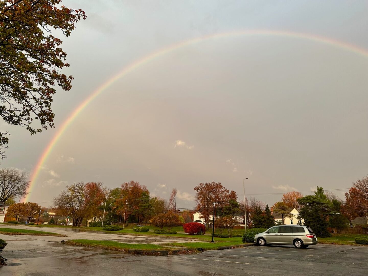 It was a rainy day on Monday and it started to clear just around sunset. I was taking Simon to synagogue and we saw this huge rainbow. Dave sent pictures from his office and Zachary sent some from work! Here are my pictures – in the parking lot and then back at home.