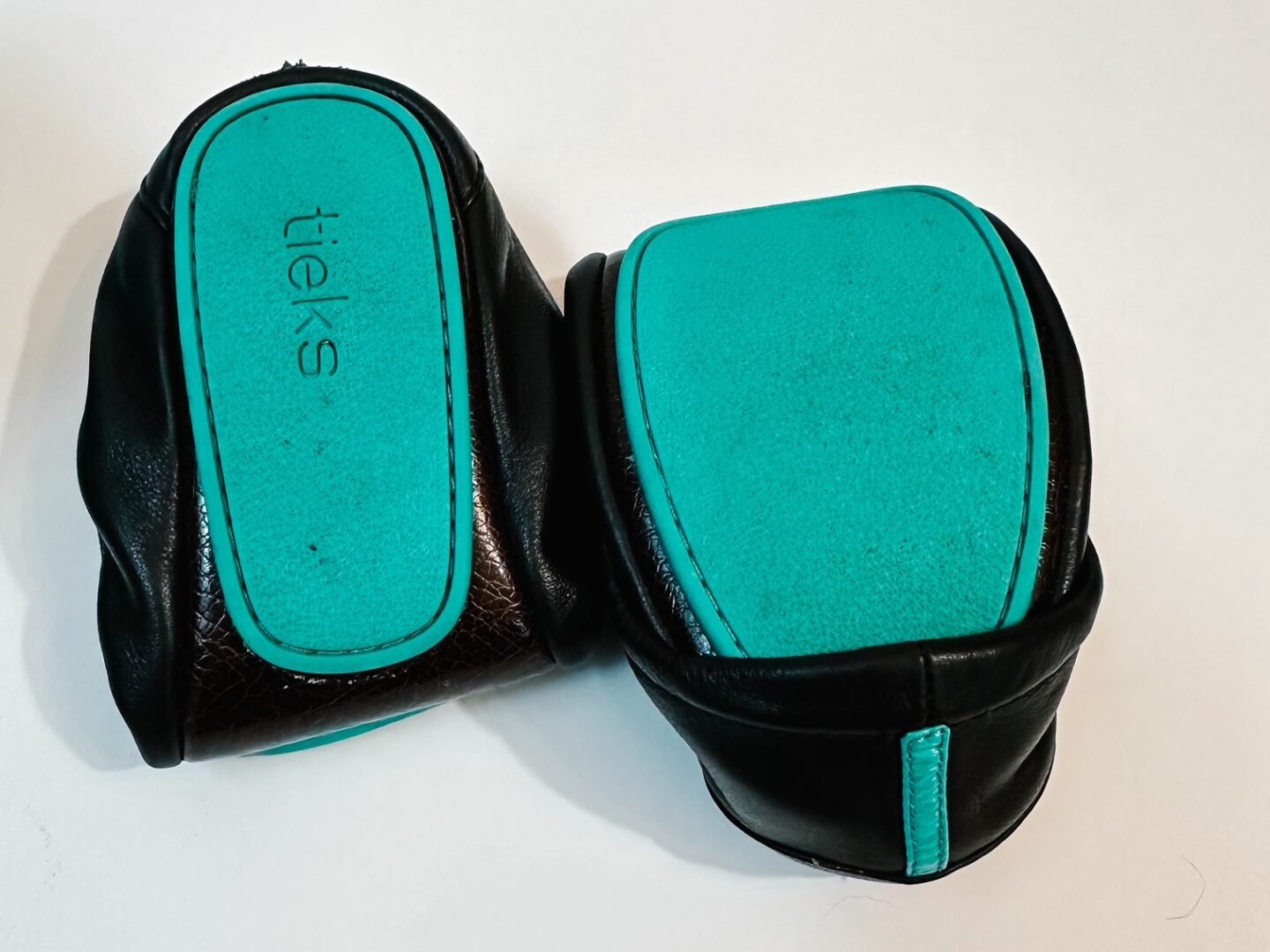 Here are my Tieks folded – I already wore them so the soles aren’t as perfectly teal as they were when they arrived!