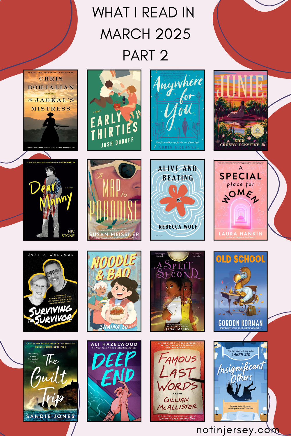 Today’s post covers the second half of the books I read in March 2025. I shared what I read in the first half of the month here. I shared my five star reads here. I did end up with a few more 5 star reads which will be in this post! The Amazon links to the books I’ve read are affiliate links and if you use them and make a purchase, I may receive a small commission. If you’ve read any of these books or are interested in them, I’d love to hear about it in the comments!