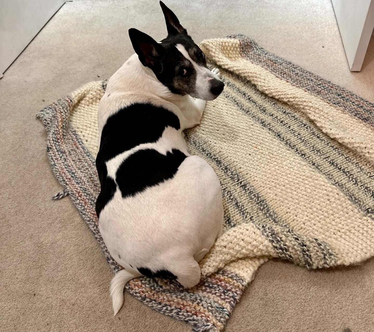 We fostered Sophie after Sheldon, and she was adopted by a nice family who we kept in touch with and they renamed her Boba. Now, we dog sit her a few times a year. She is a very good girl, but she is terrified of thunderstorms and fireworks. So, having her here for July 4 this year was a little hard. She takes medicine for her anxiety, but she refused to go outside, even hours before the fireworks started – how did she know?? She ended up peeing in the kitchen. But that’s ok, we still love her. This photo was two years ago – she is a bit more skinny now!