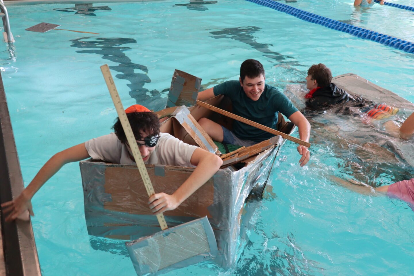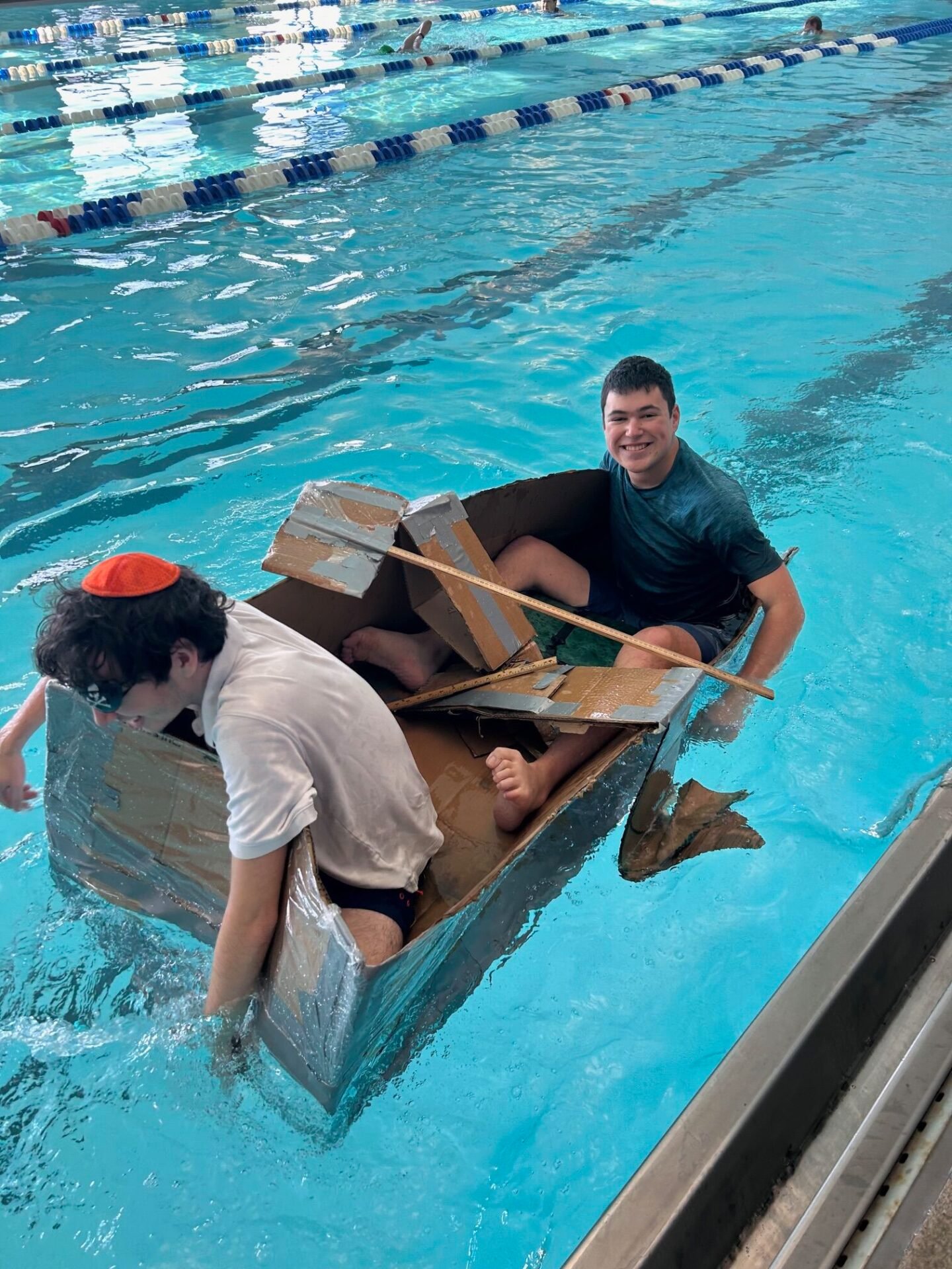 Simon’s school does a program on the week between winter break and officially starting second semester where the kids take mini classes which are generally just for entertainment like drinking tea and talking or playing games. This year, Simon was in one called Sink or Swim, where the students built boats out of cardboard, etc, and sailed them in the pool – but they were boats sized for people! So Simon and his friend were actually in their boat! They won, because the other group’s boat sank right away, and Simon’s boat made it a full lap. The whole school came to watch and it looked like a lot of fun. Not my pictures since I wasn’t there, but check it out: