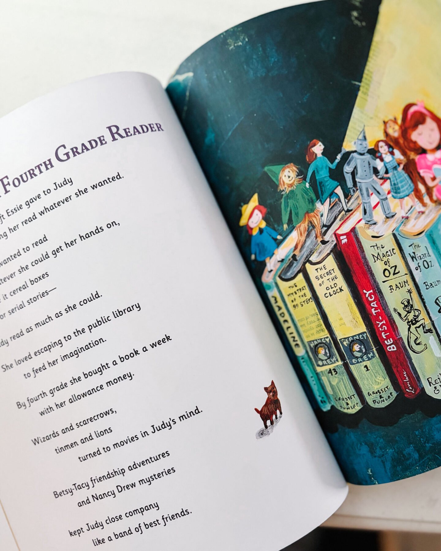 Here’s a picture of a page of a fun picture book I received about Judy Blume.