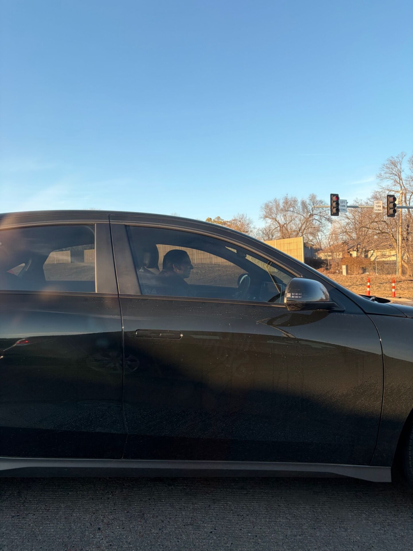 We were driving and we saw our friend in the car next to us. She was talking on the phone and didn’t notice us, so I took a picture and texted it to her. So not really a window view, but still a funny one!