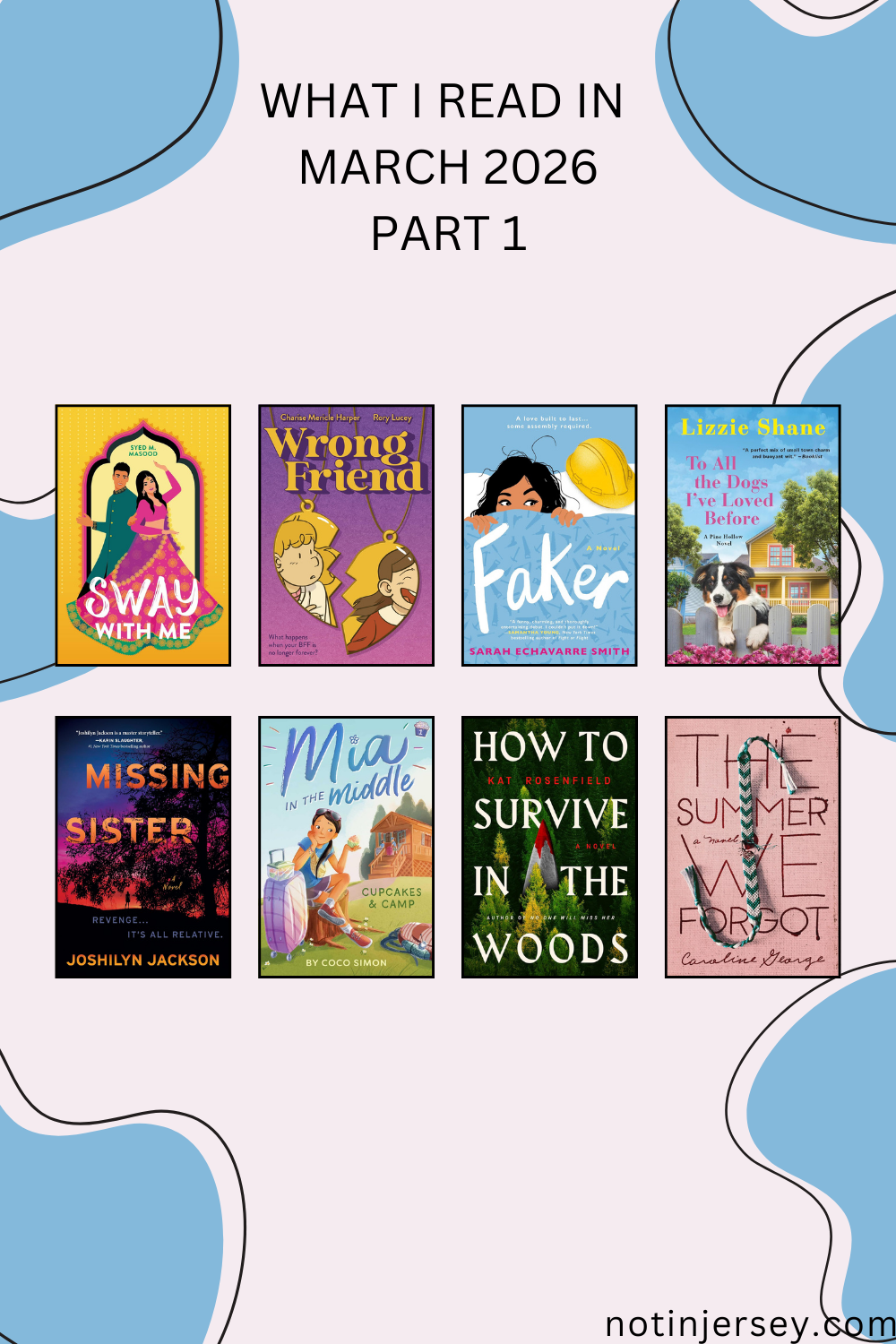 This post includes eight of the books I read this month. Six were print books and two were audio. Four of these were adult books, two were YA, and two were Middle Grade. Genres included rom com, graphic novel, contemporary, and thriller.